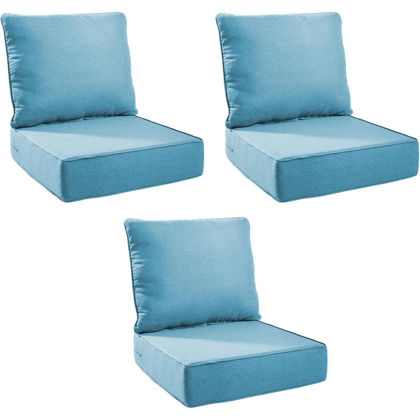 3-Pack Light Blue 22x24 Inch UV & Water Resistant Outdoor Cushion Set with 6-Inch Thick Foam for Patio Furniture