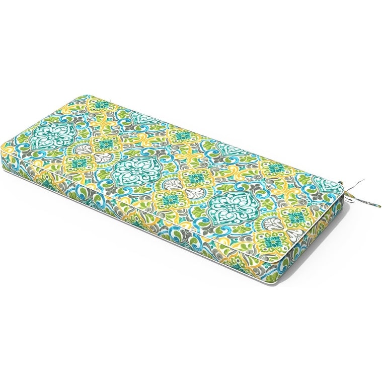 Reversible Outdoor Bench Cushion, Water Resistant, 42 x 18 x 3 Inch, Fade Resistant, Easy Care, with Non-Slip Mat