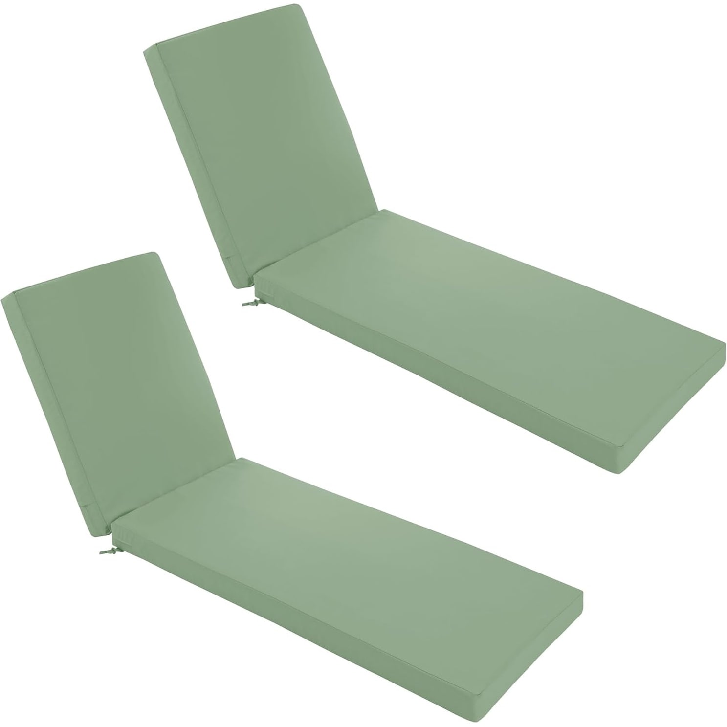 Outdoor Chaise Lounge Cushion Set of 2 - Waterproof, Fade Resistant with Removable Cover - 72 x 21 x 3 Inch, Sage Green