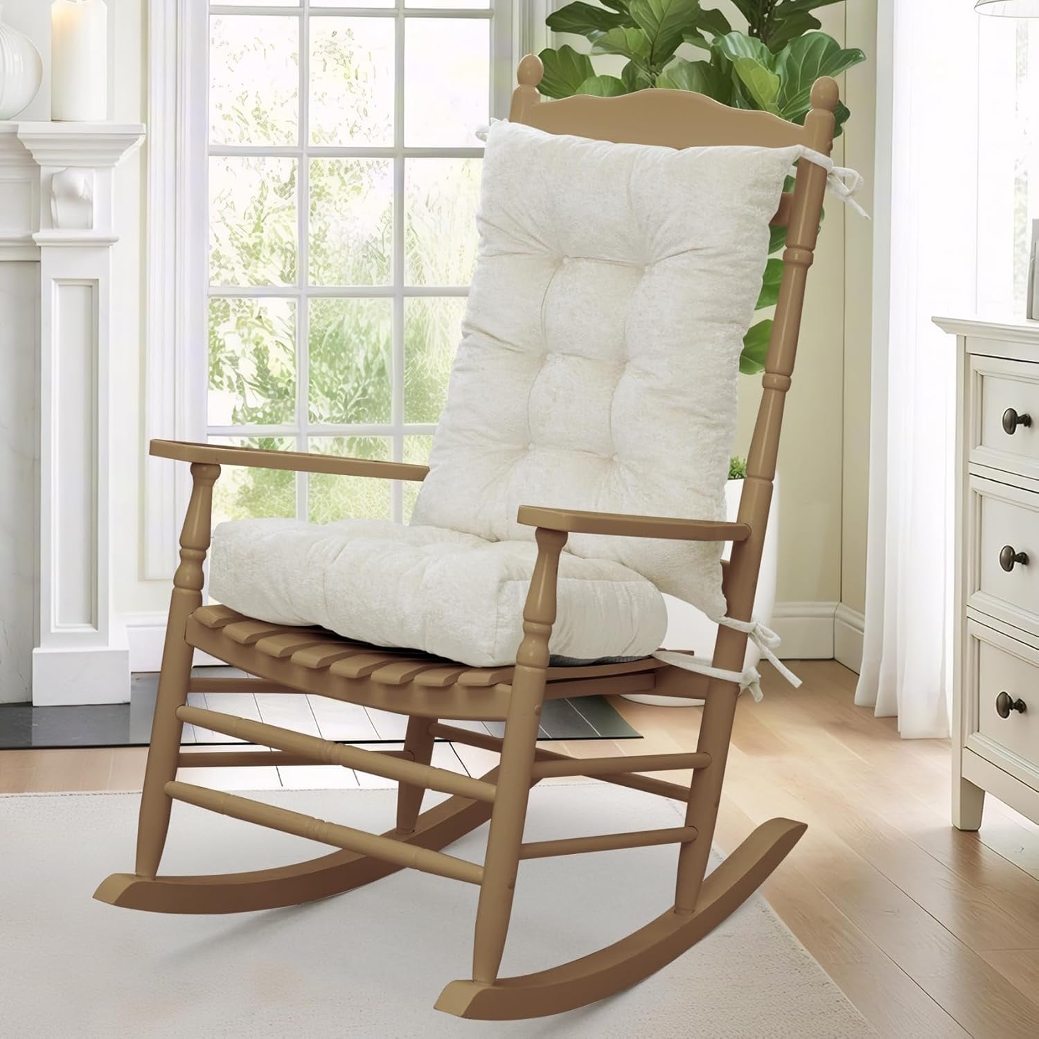 Non-Slip Tufted Rocking Chair Cushion Set with Ties for Indoor/Outdoor Use
