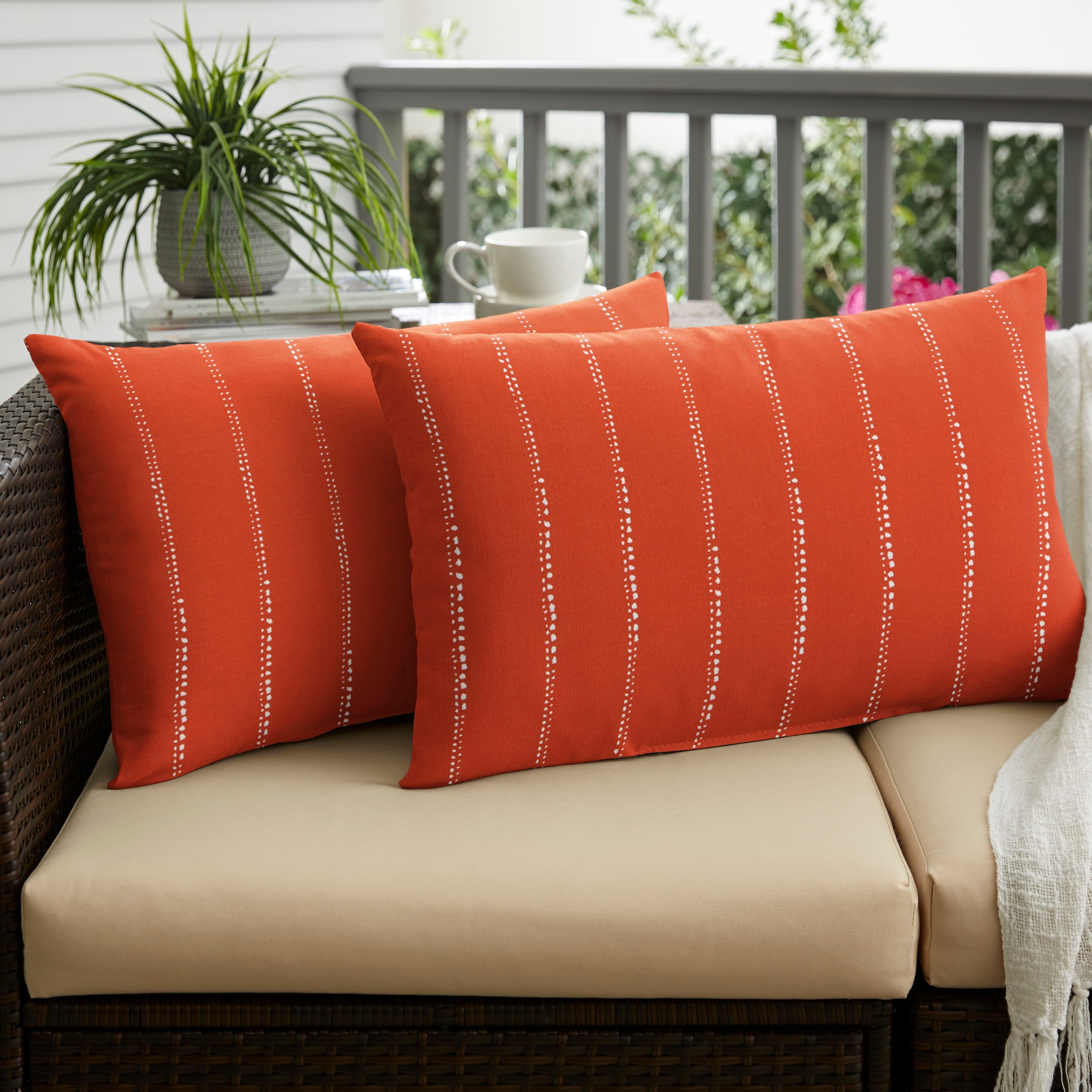 Caldwell II Orange Dotted Stripes Indoor/ Outdoor 13 x 20-inch Corded Pillow Set