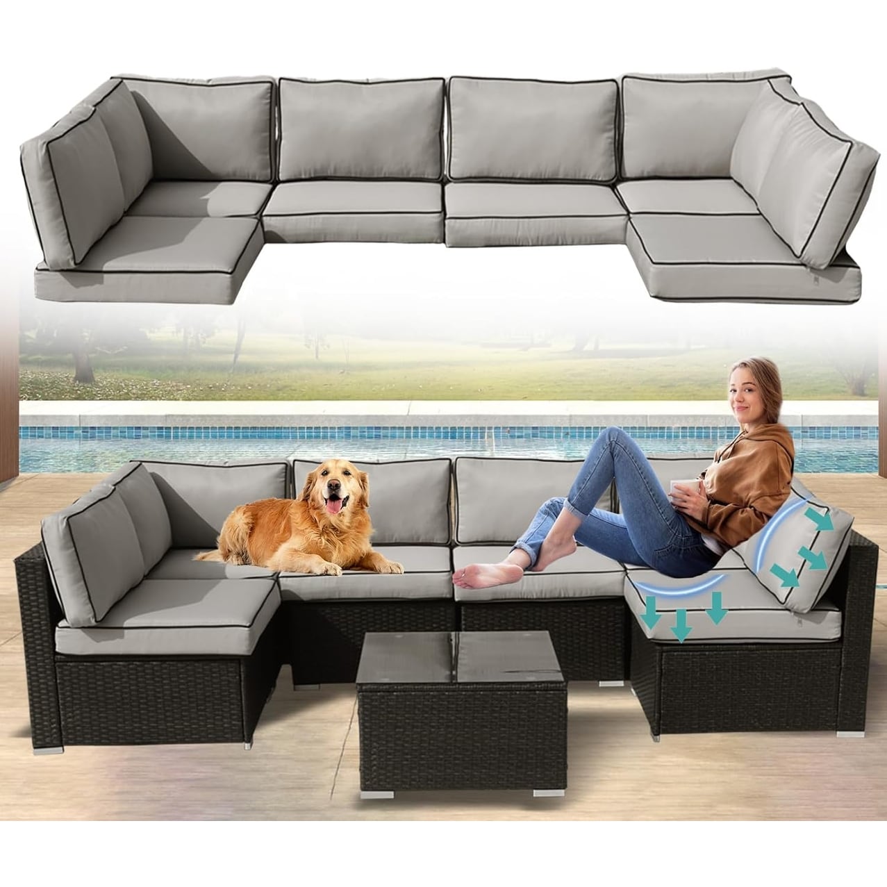 14-Piece Water-Resistant Outdoor Patio Furniture Cushion Set for Sectional Sofa (Grey+Black Edges)