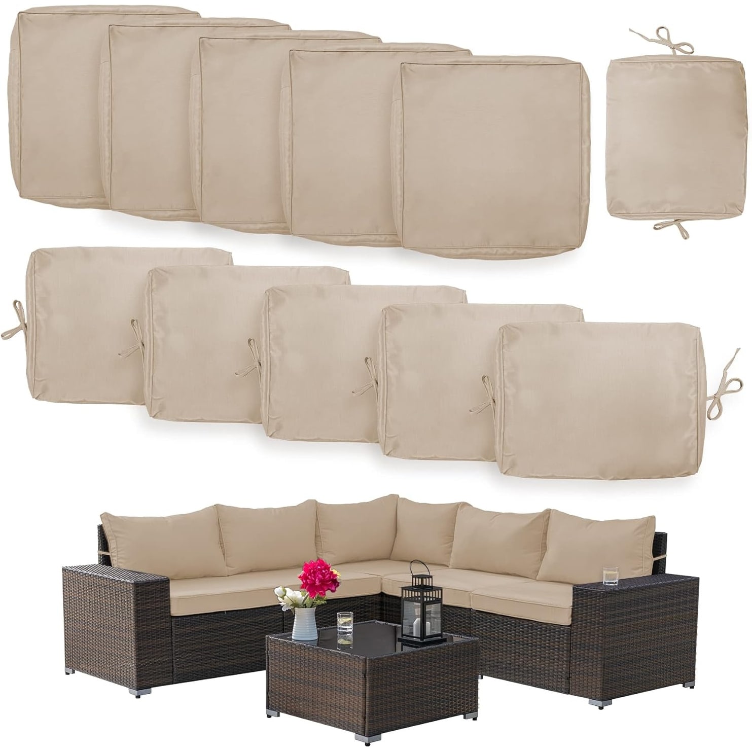 11-Piece Patio Cushion Covers Set with Non-Slip Velcro and Ties for Outdoor Furniture