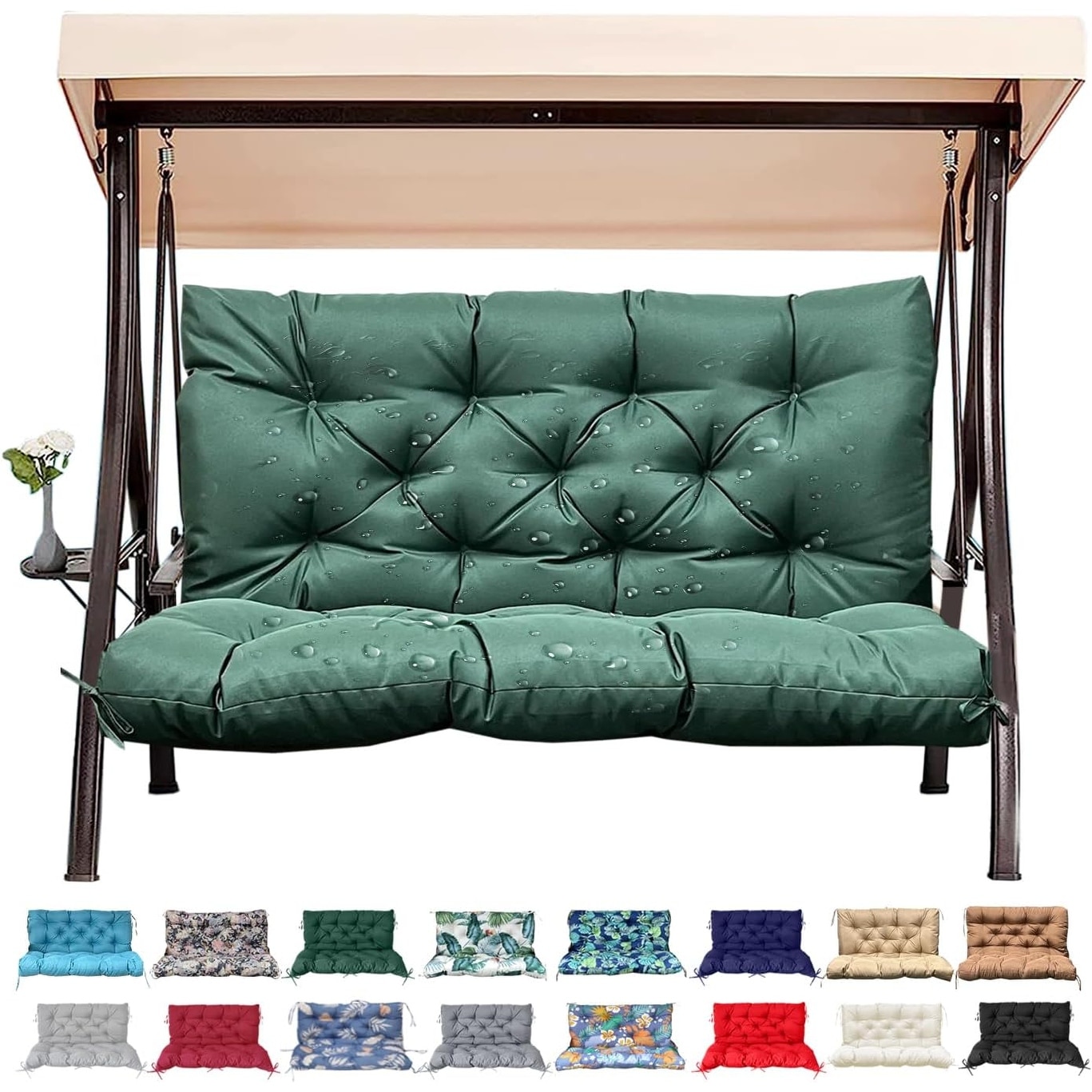 Waterproof Outdoor/Indoor Swing Replacement Cushion with Backrest and Ties, 4-inch Thick, Dark Green