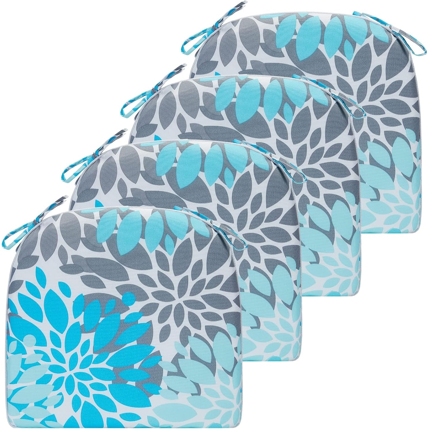 Set of 4 Water-Resistant Outdoor Chair Cushions with Adjustable Straps, 16x17 Inch