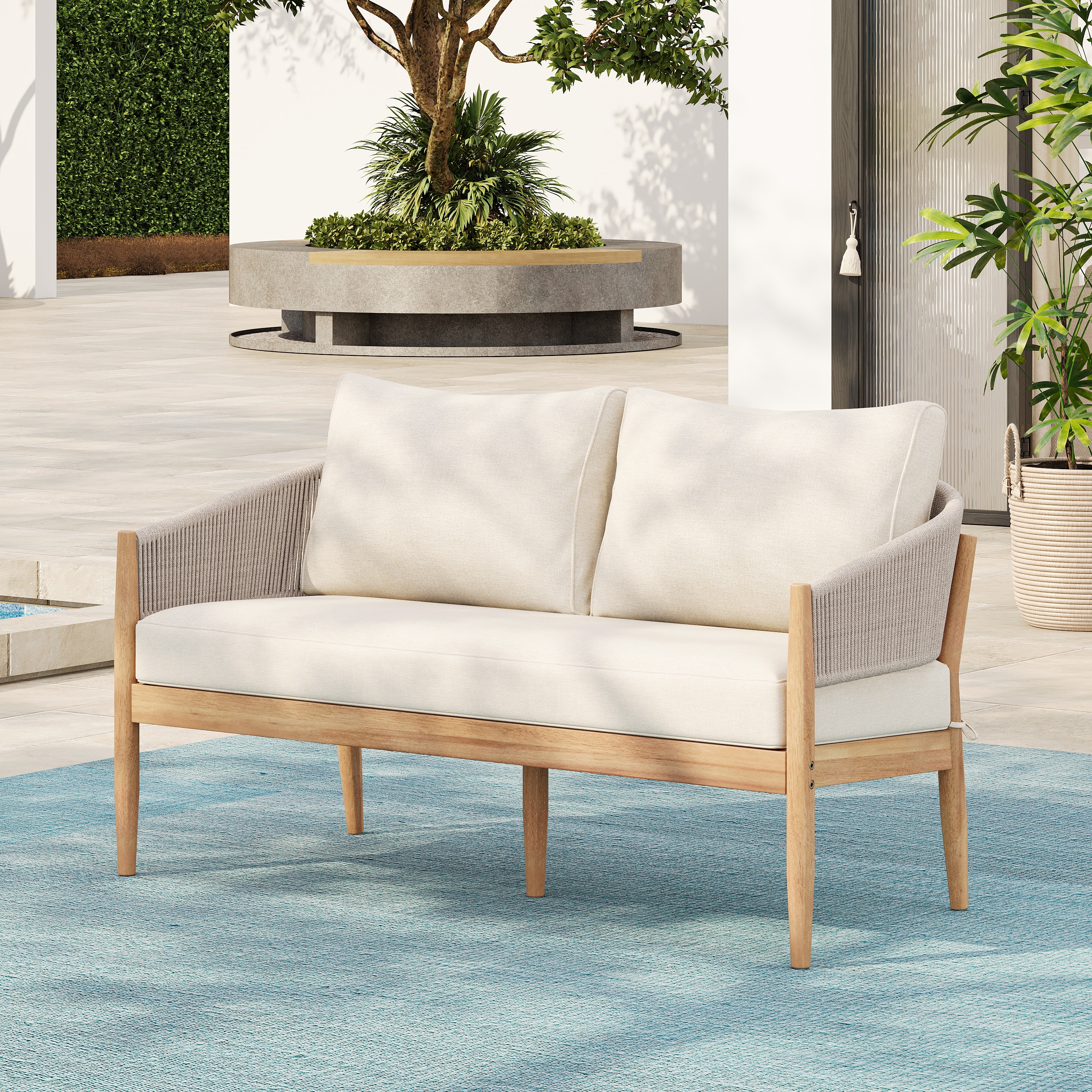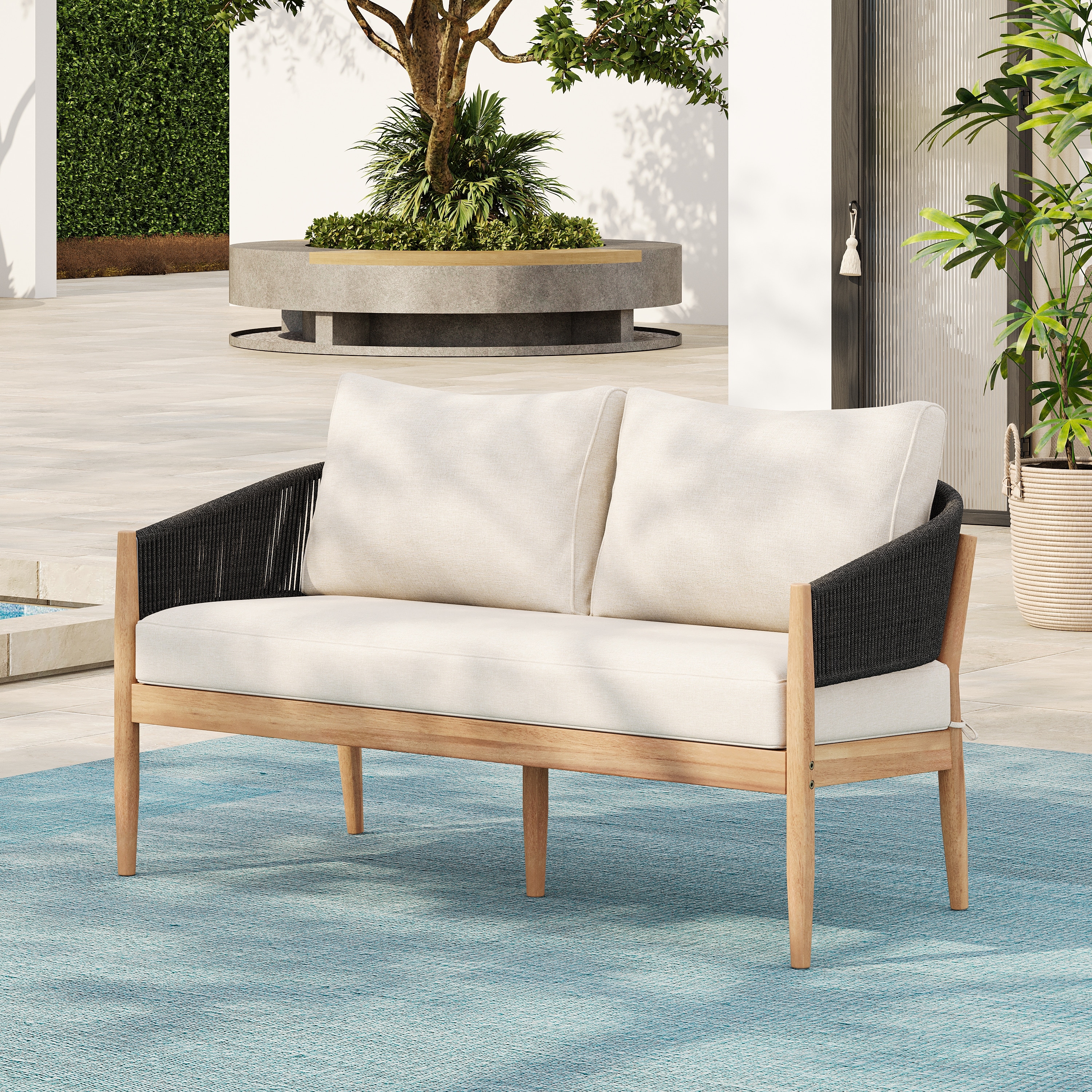 Outdoor Acacia Wood Loveseat sofa With Cushions