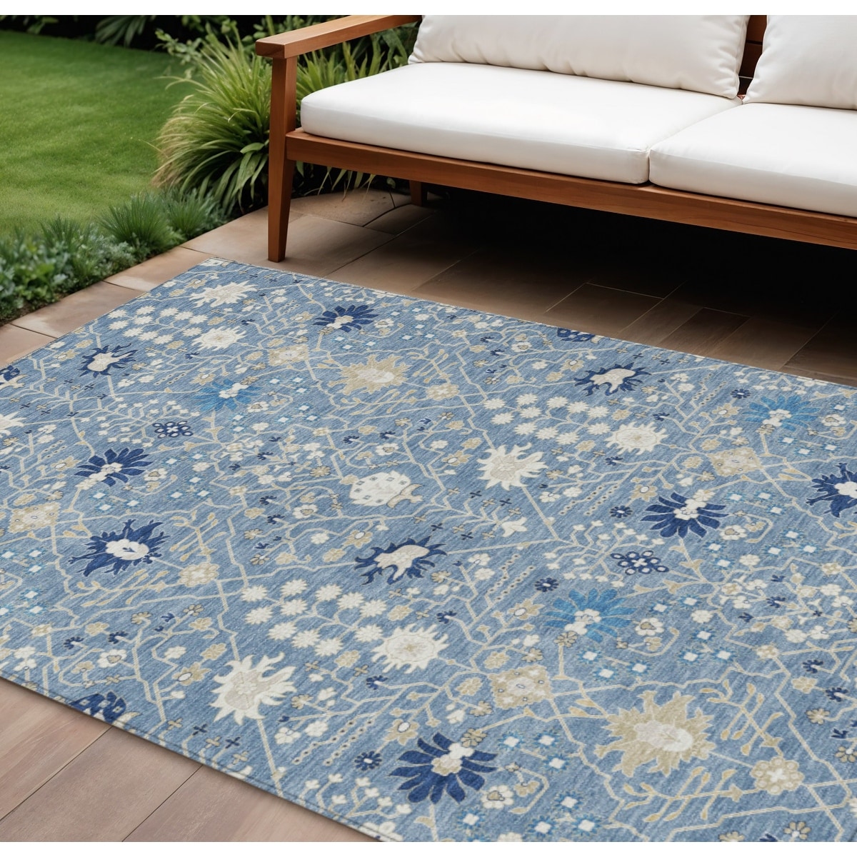8' X 10' Denim Blue Ivory And Beige Oriental Washable Indoor Outdoor Area Rug - 9' x 12'