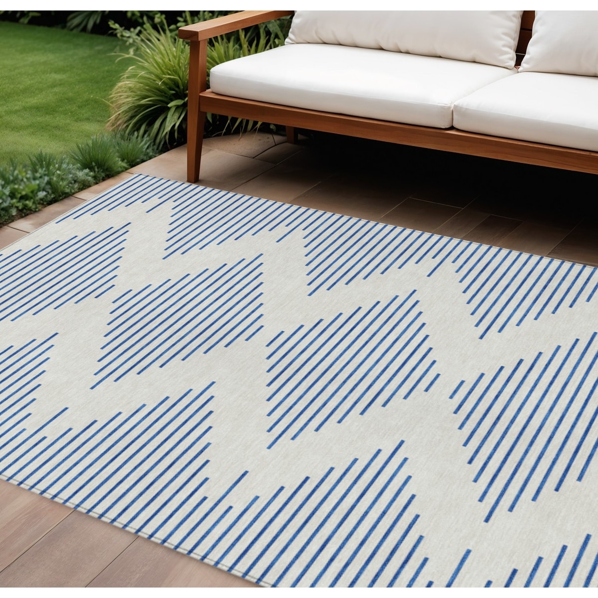 8' X 10' Ivory And Blue Geometric Washable Indoor Outdoor Area Rug - 9' x 12'