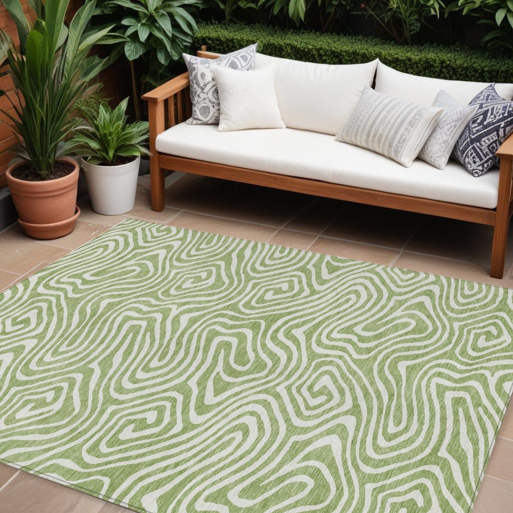 8' X 10' Artichoke Green And Ivory Abstract Washable Indoor Outdoor Area Rug - 9' x 12'