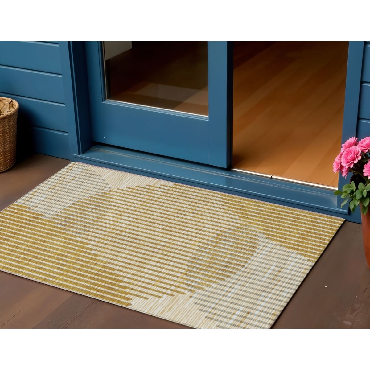 3' X 5' Gold And Beige Geometric Washable Indoor Outdoor Area Rug - 3' x 6'