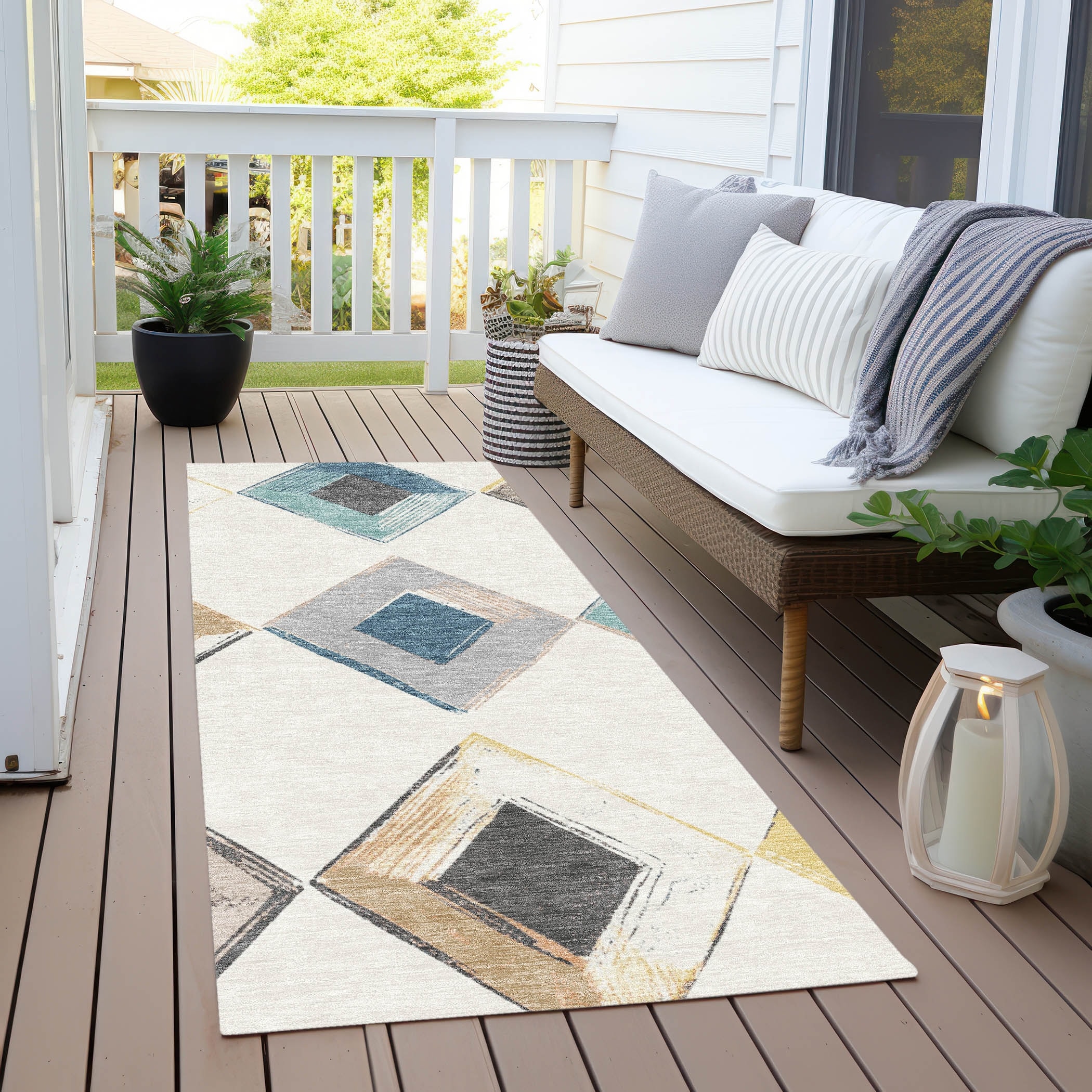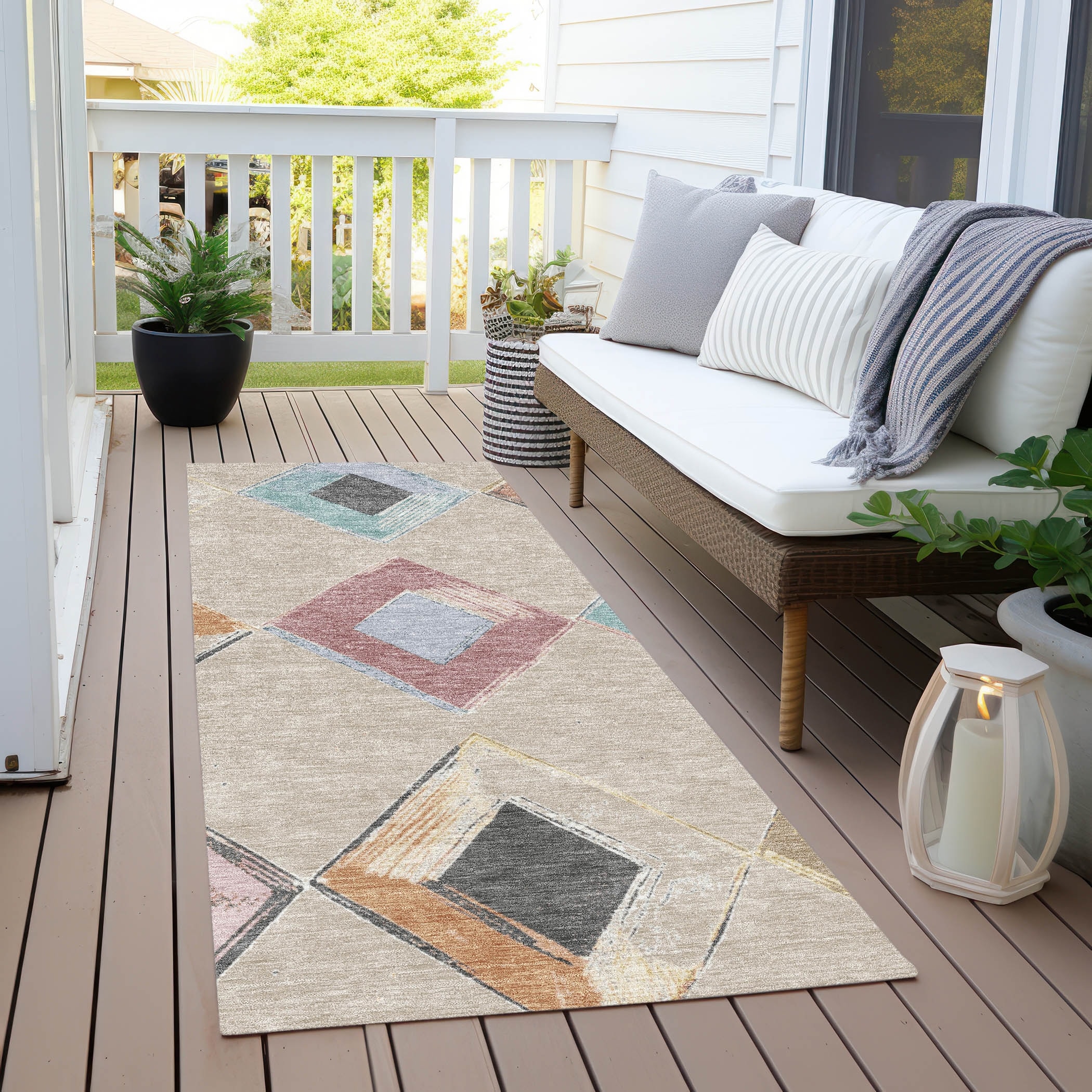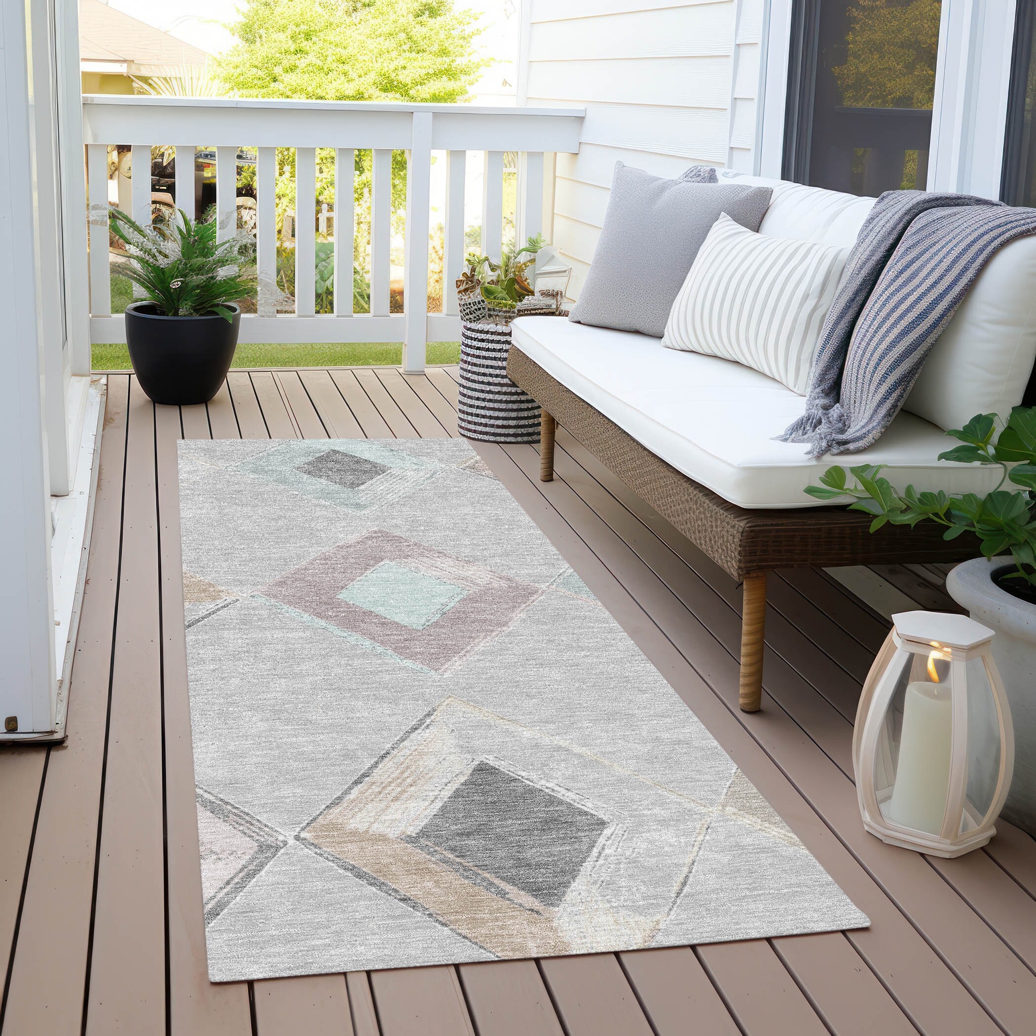 Machine Washable Indoor/Outdoor Diamond Chantille Rug