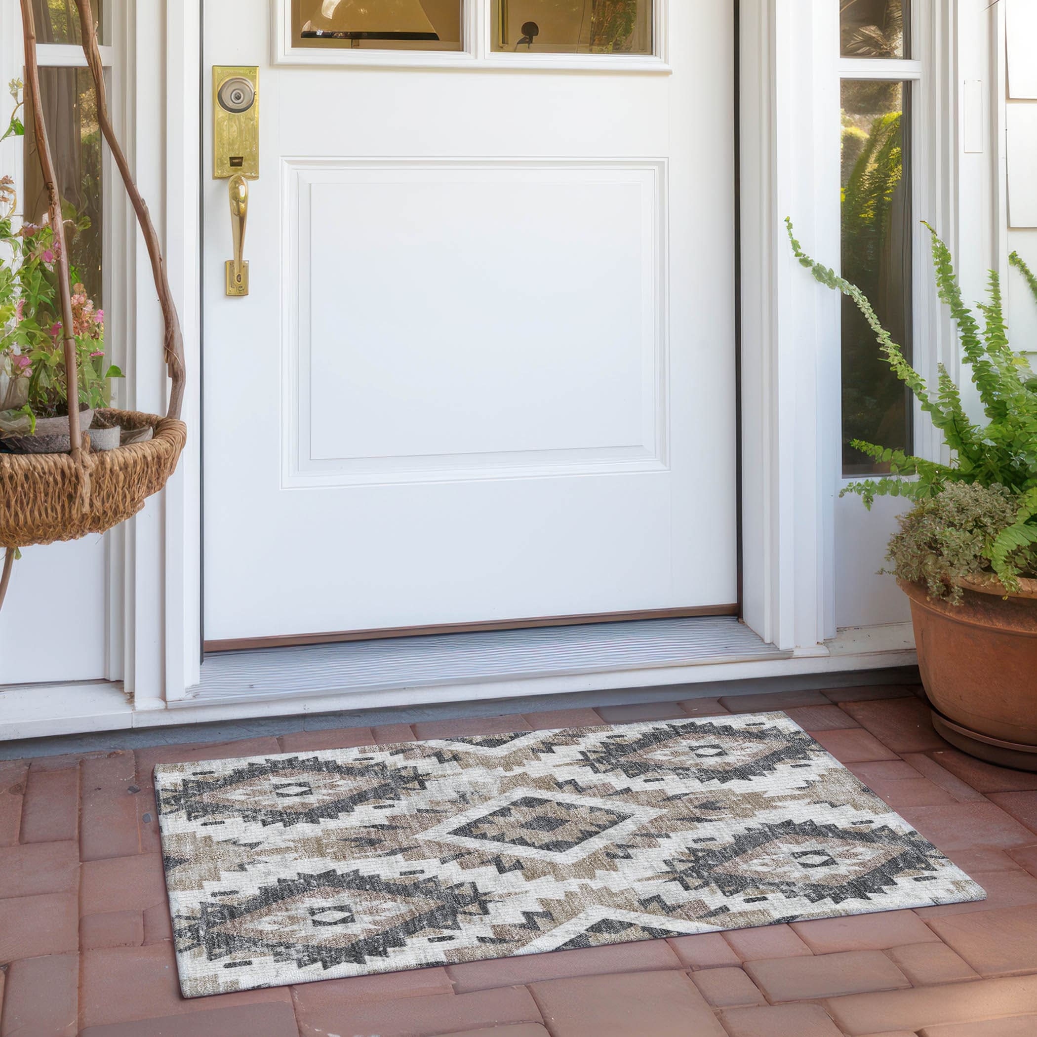 Machine Washable Indoor/ Outdoor Boho Moroccan Chantille Rug