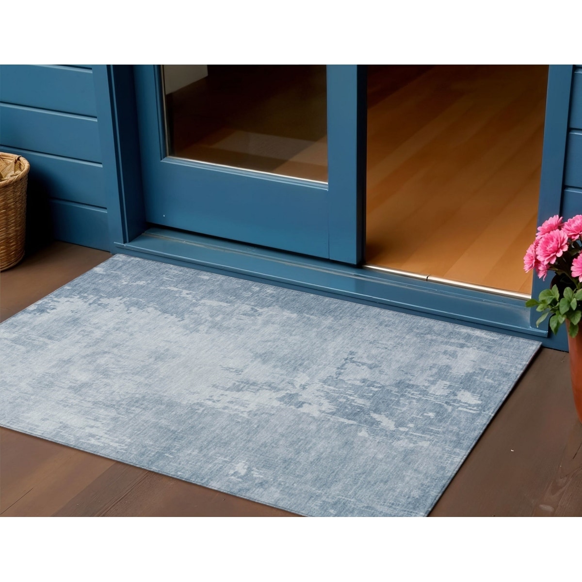 3' X 5' Sky Blue Abstract Washable Indoor Outdoor Area Rug - 3' x 6'