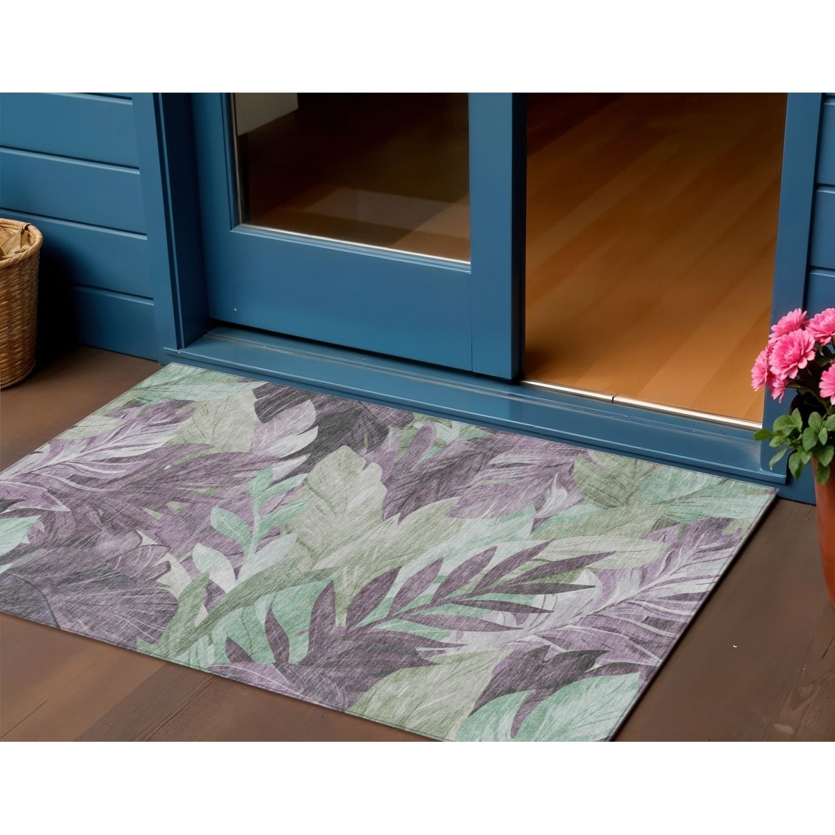 3' X 5' Lavender And Lilac Floral Washable Indoor Outdoor Area Rug - 3' x 6'