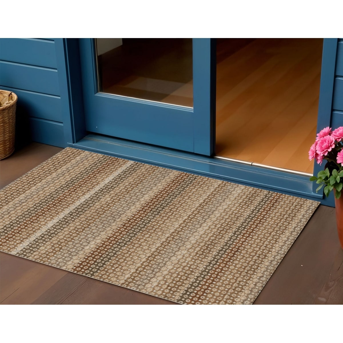 3' X 5' Taupe And Brown Striped Washable Indoor Outdoor Area Rug - 3' x 6'