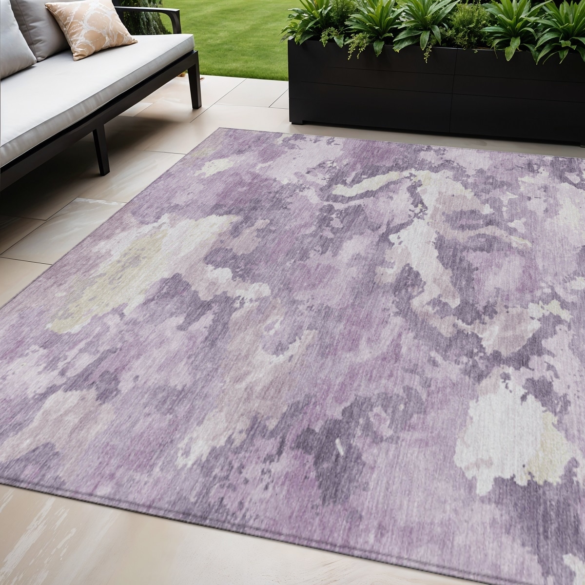 5' X 8' Lavender And Lilac Abstract Washable Indoor Outdoor Area Rug - 5' x 8'