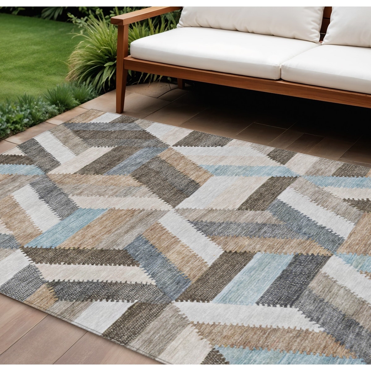 8' X 10' Brown Geometric Washable Indoor Outdoor Area Rug - 9' x 12'