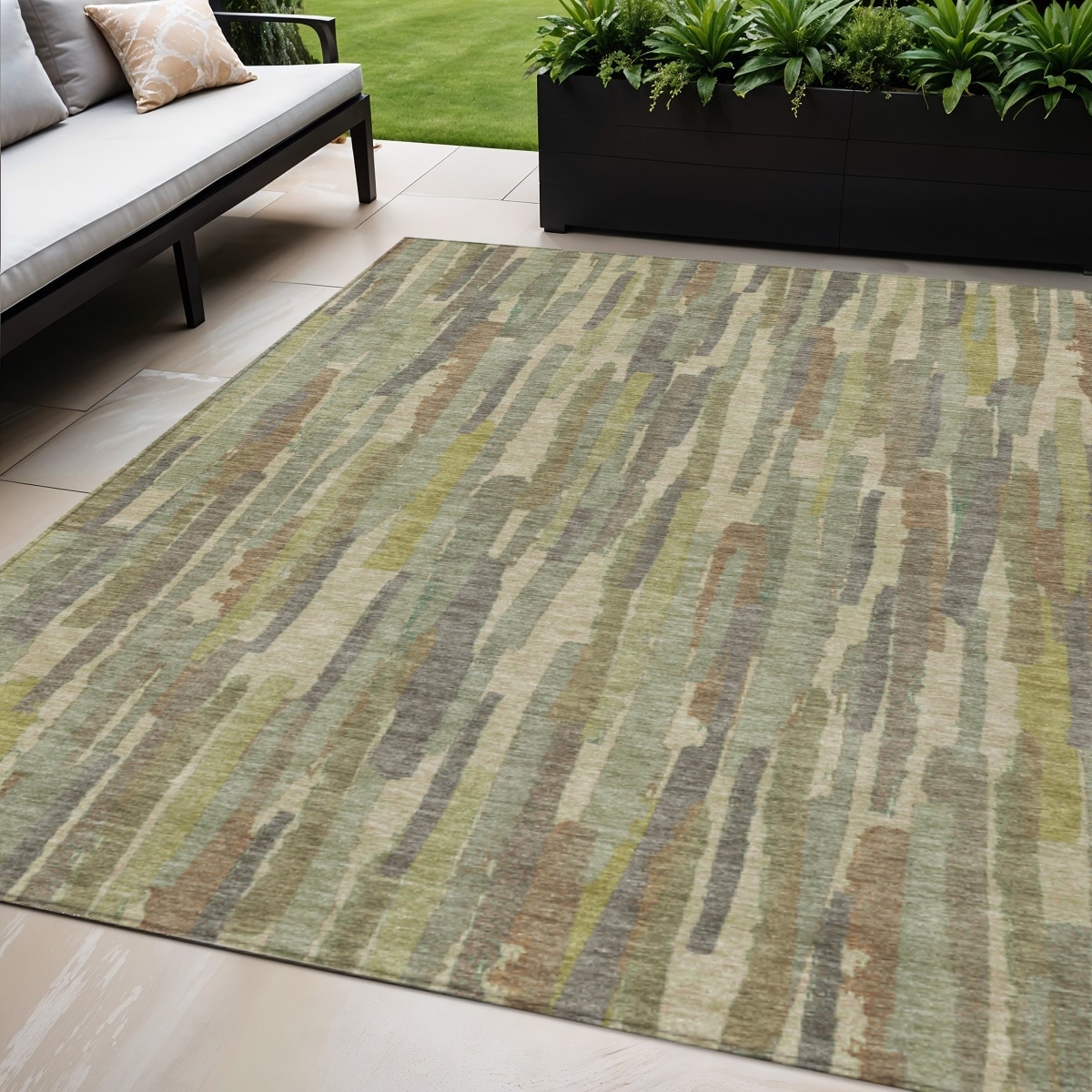 5' X 8' Artichoke Green And Ivory Striped Washable Indoor Outdoor Area Rug - 5' x 8'