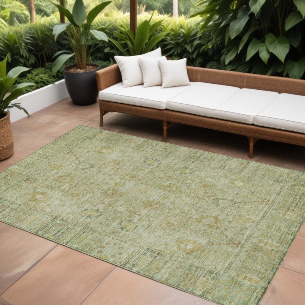 9' X 12' Sage Green And Brown Oriental Washable Indoor Outdoor Area Rug - 9' x 12'