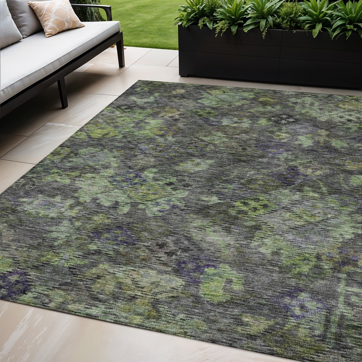 5' X 8' Green Charcoal And Black Floral Washable Indoor Outdoor Area Rug - 5' x 8'
