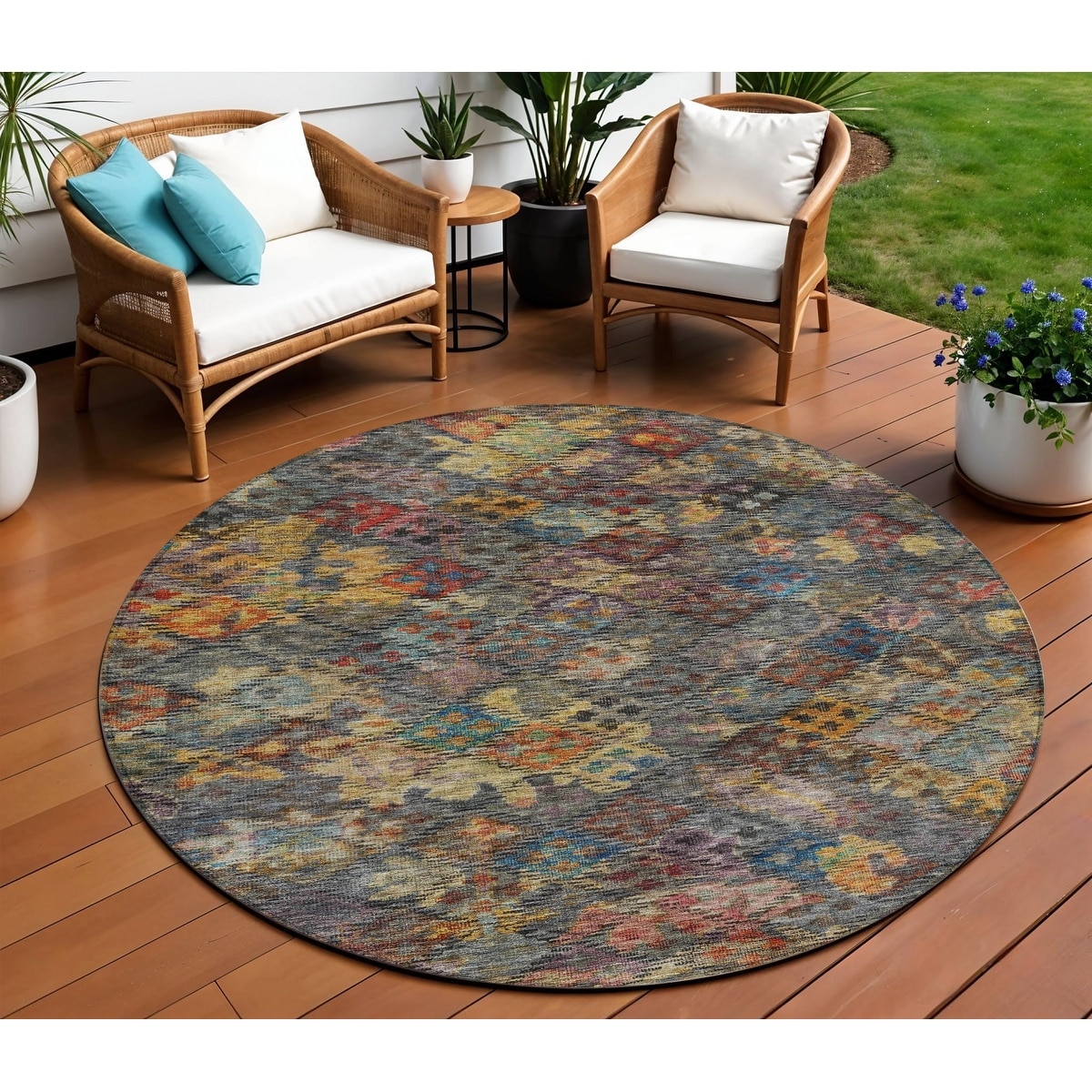 8' Lavender Purple And Gray Round Plaid Washable Indoor Outdoor Area Rug - 6' x 9'