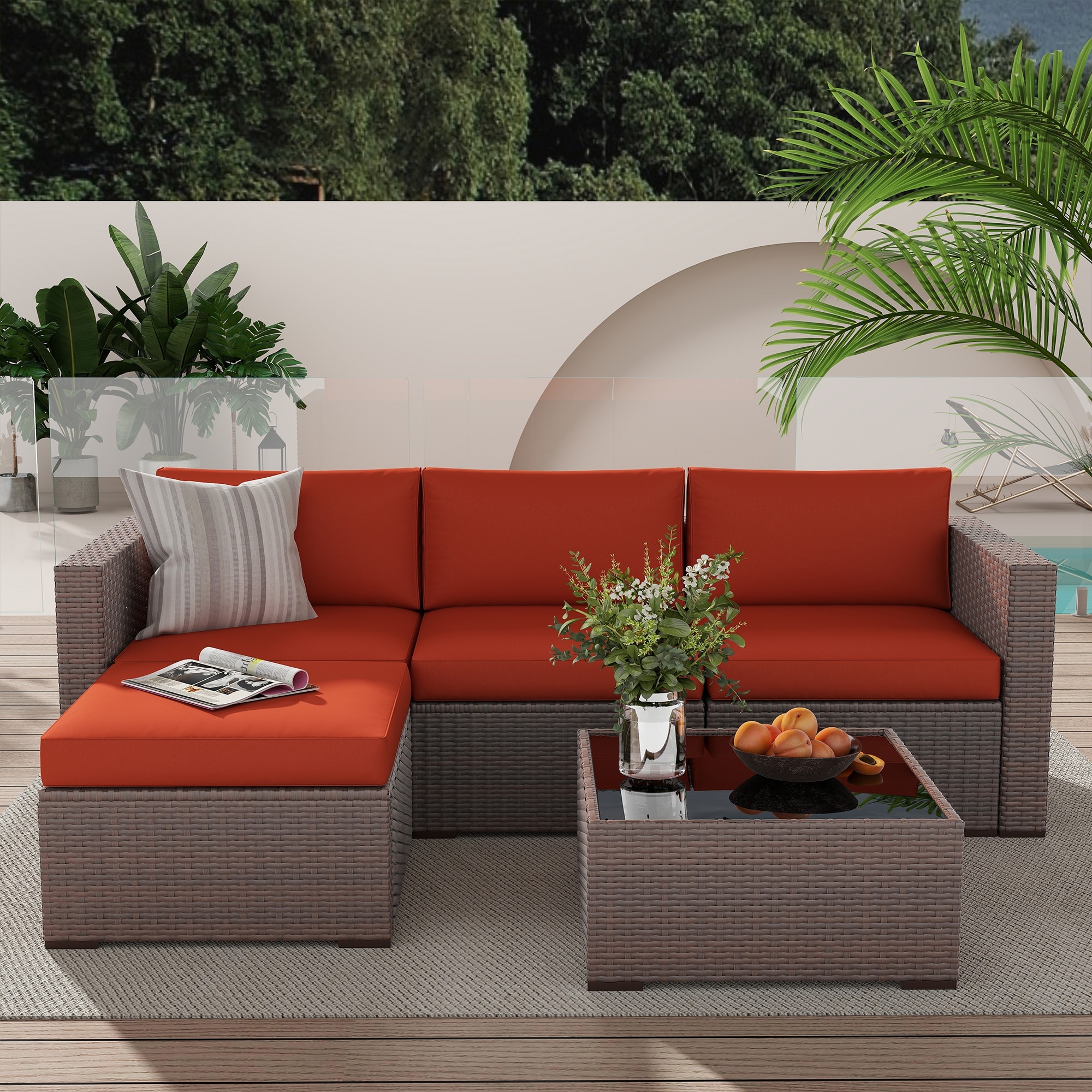 Outdoor 3-Piece Wicker Sofa Set with Ottoman