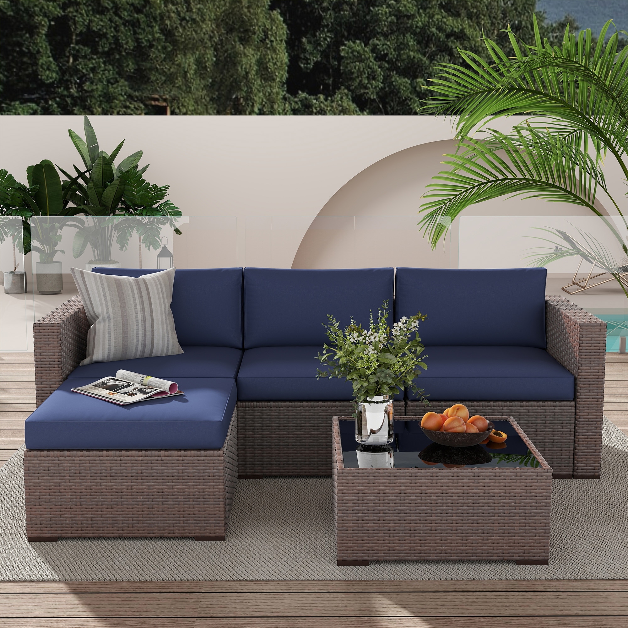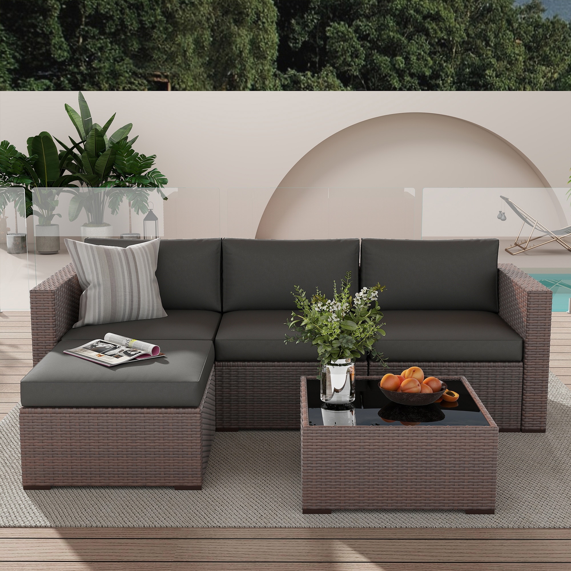 5-Piece Outdoor Wicker Sectional Sofa Set, Modular PE Rattan Patio Furniture with Washable Cushions