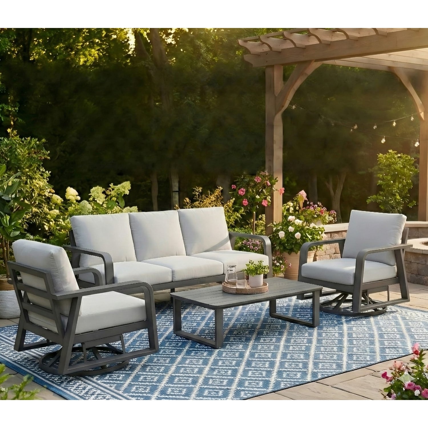Outdoor 4-Piece Set, 77.5" 3-Seater Sofa, 2 Single Swivel Chairs and 1 Coffee Table