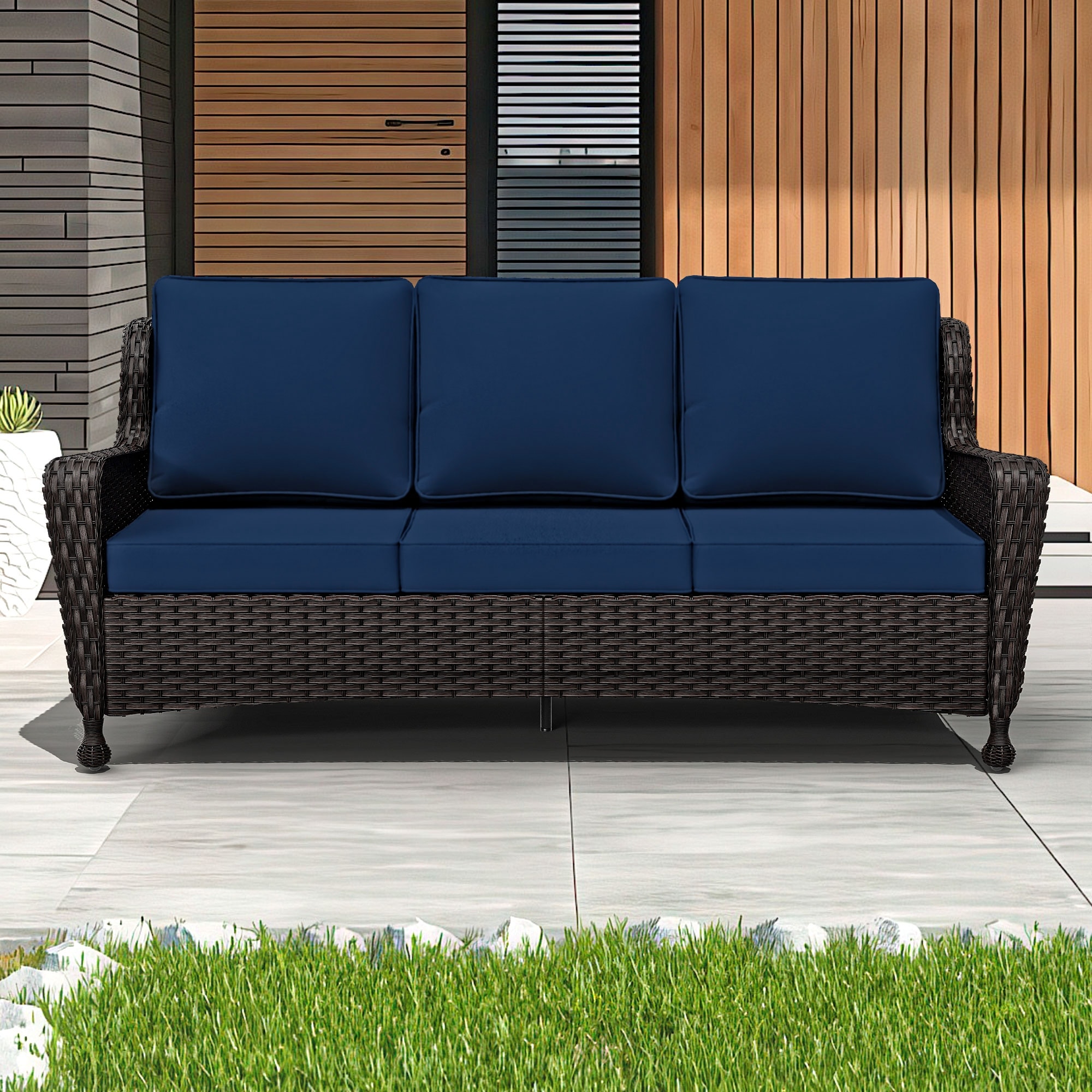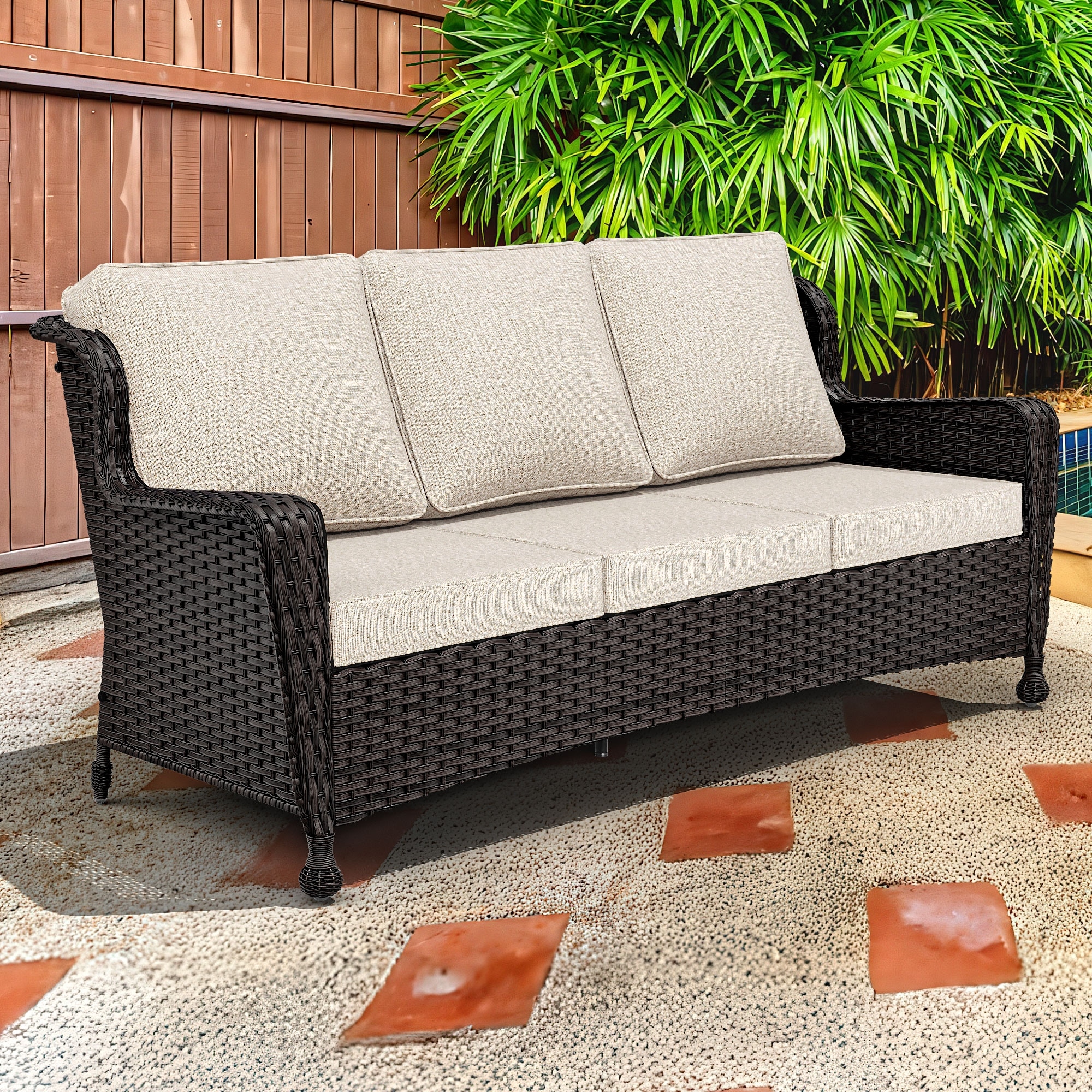3-Seat PE Rattan Wicker Sofa Outdoor Patio Sofa with Cushions