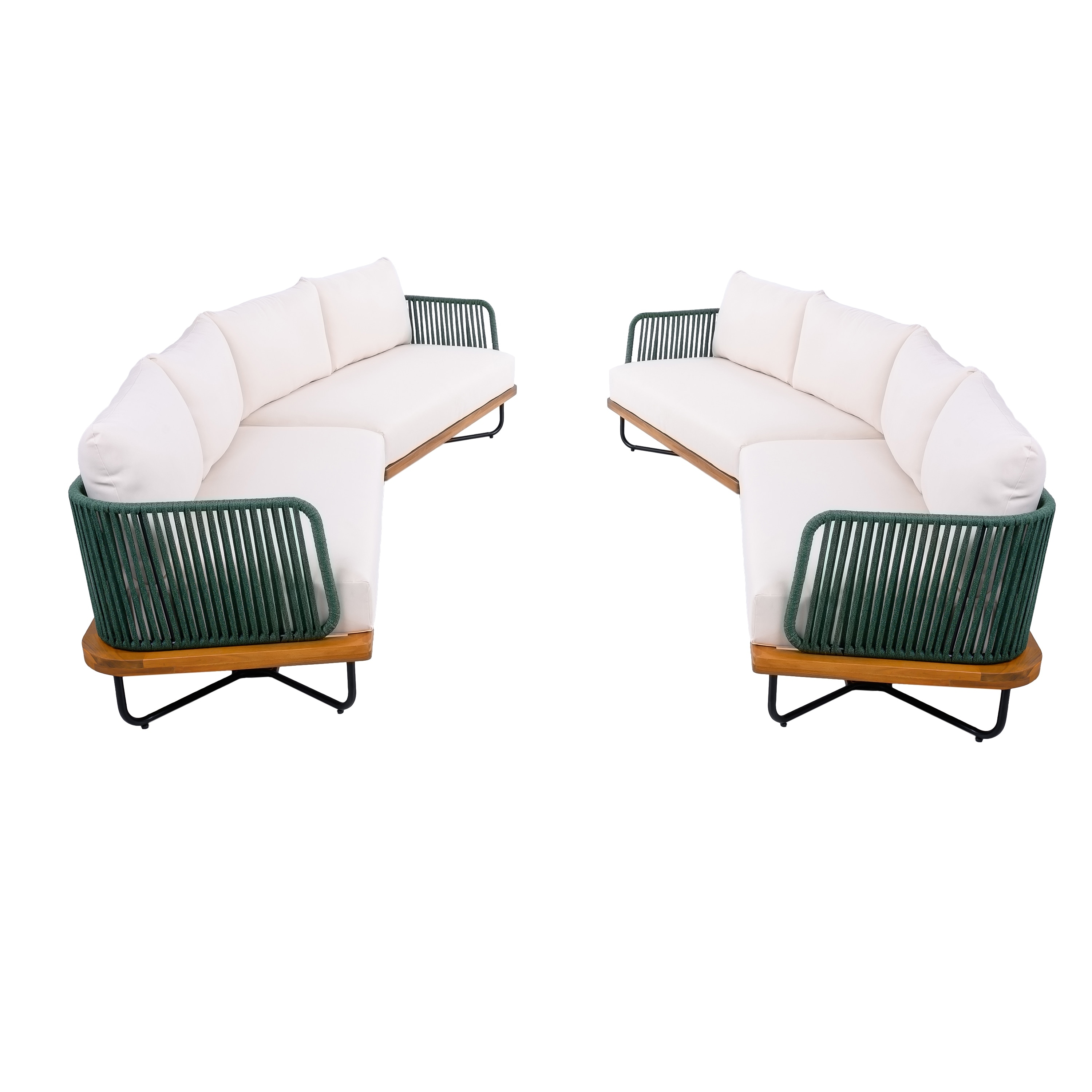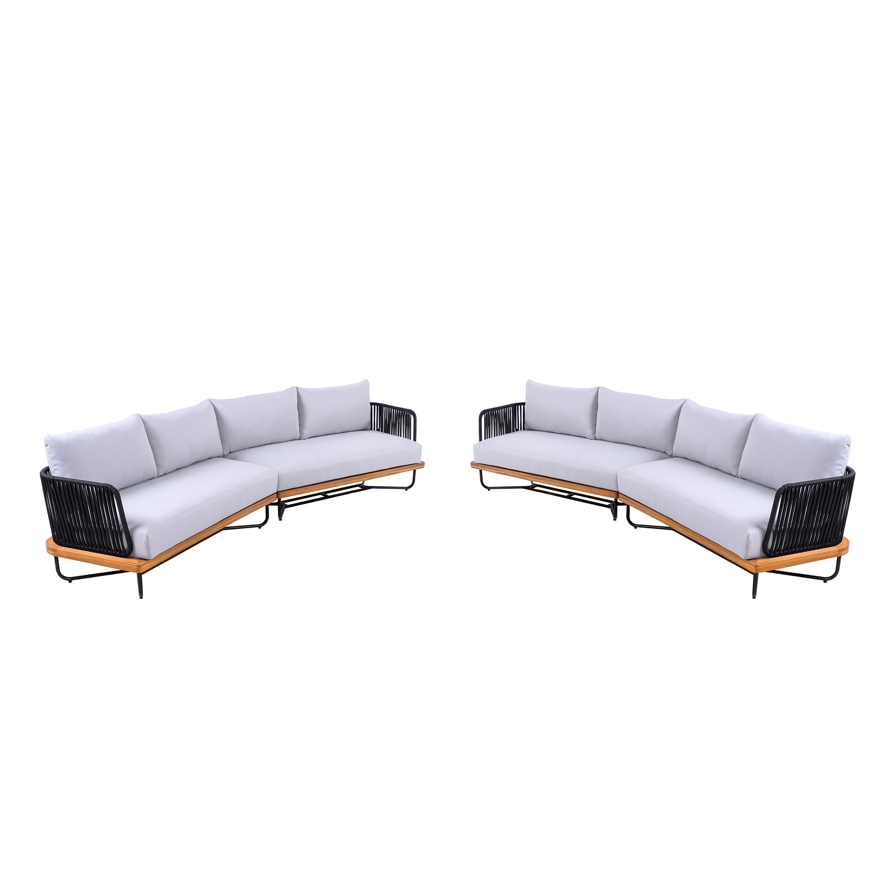 GDFStudio Thalor Acacia Wood Rope Woven Outdoor 4 Piece Sofa Set