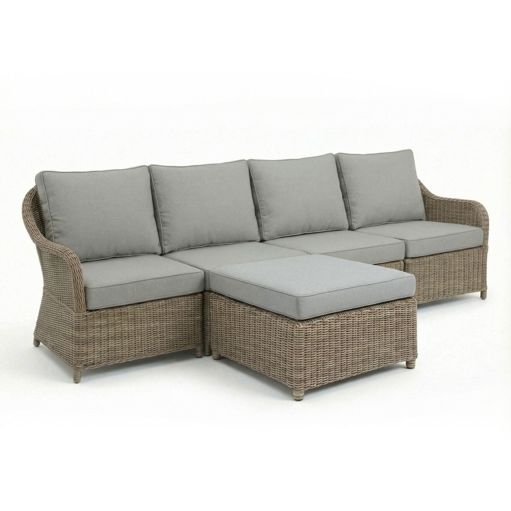 Martha Stewart 4 Seat All-Weather Rattan Wicker Patio Sofa with Ottoman