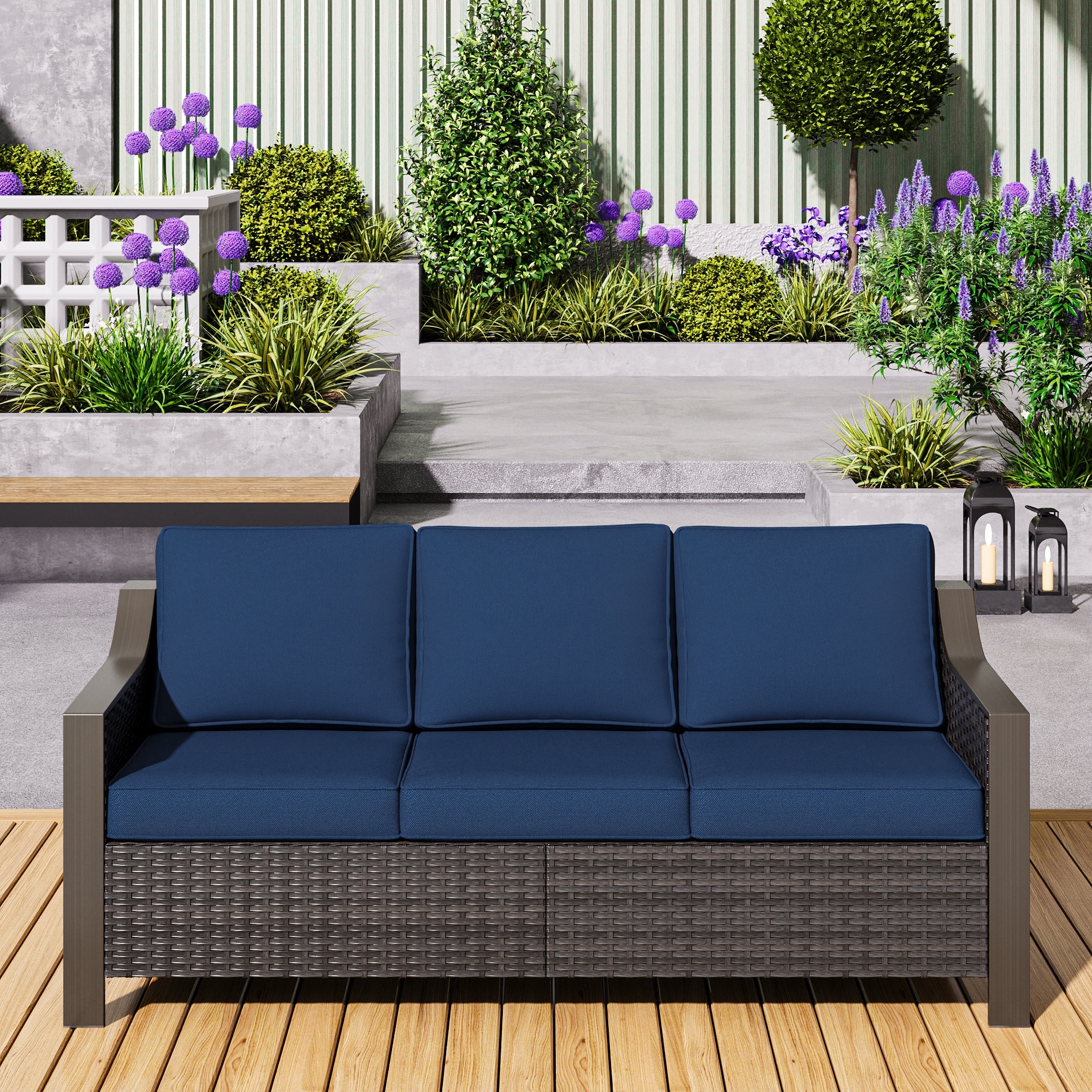 COZYWOR Premium Outdoor Patio Rattan Three-person Sofa