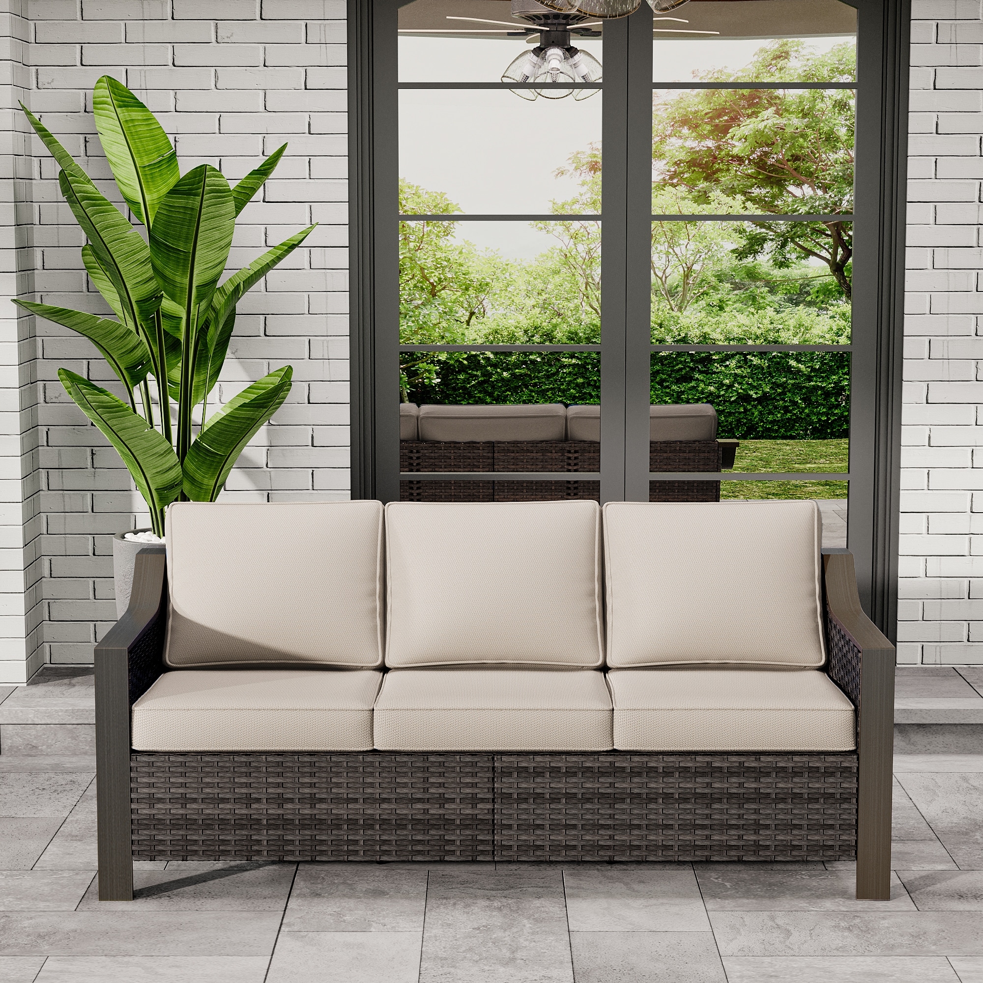 Pocassy 3-Seat Patio Wicker Sofa Outdoor Rattan Couch Sofa