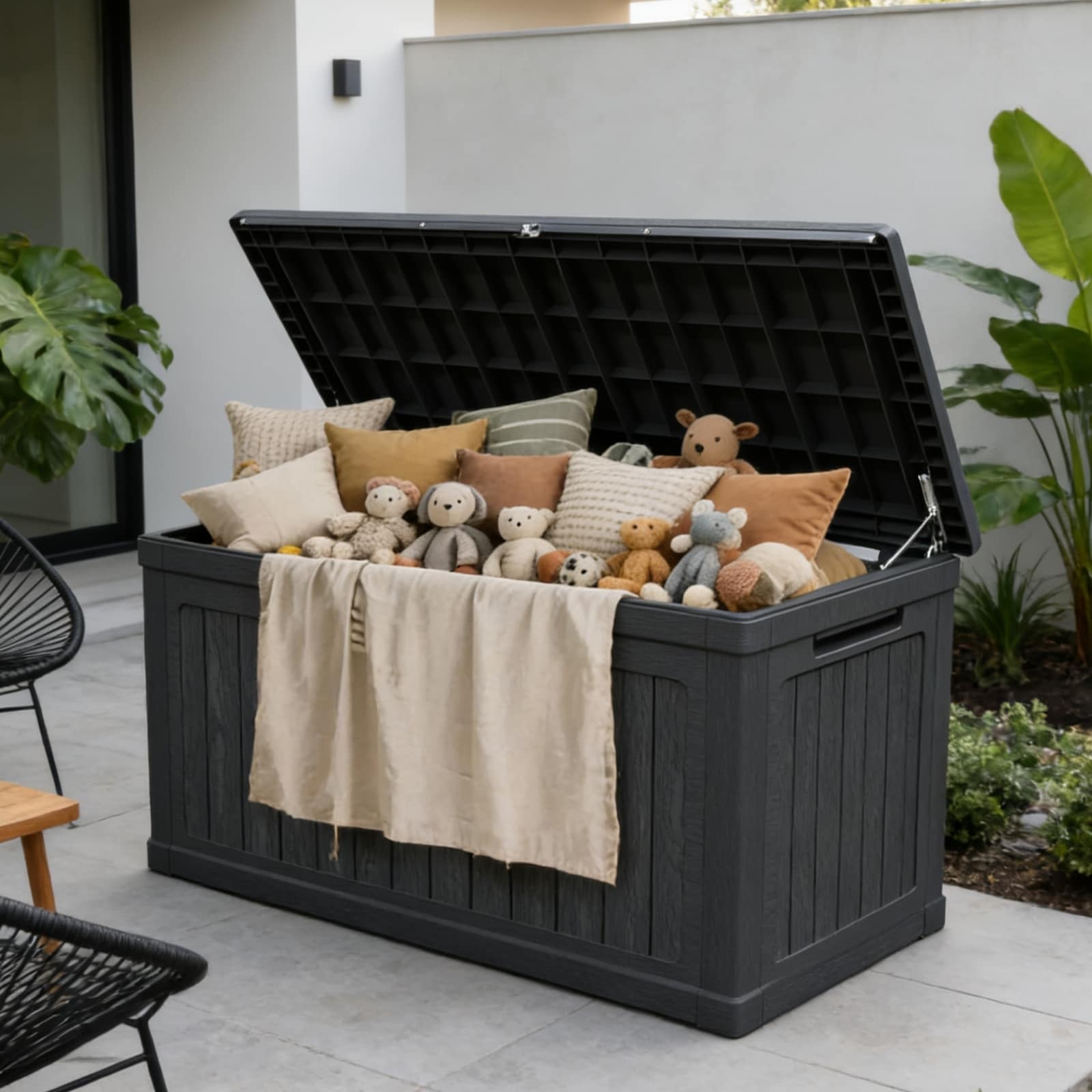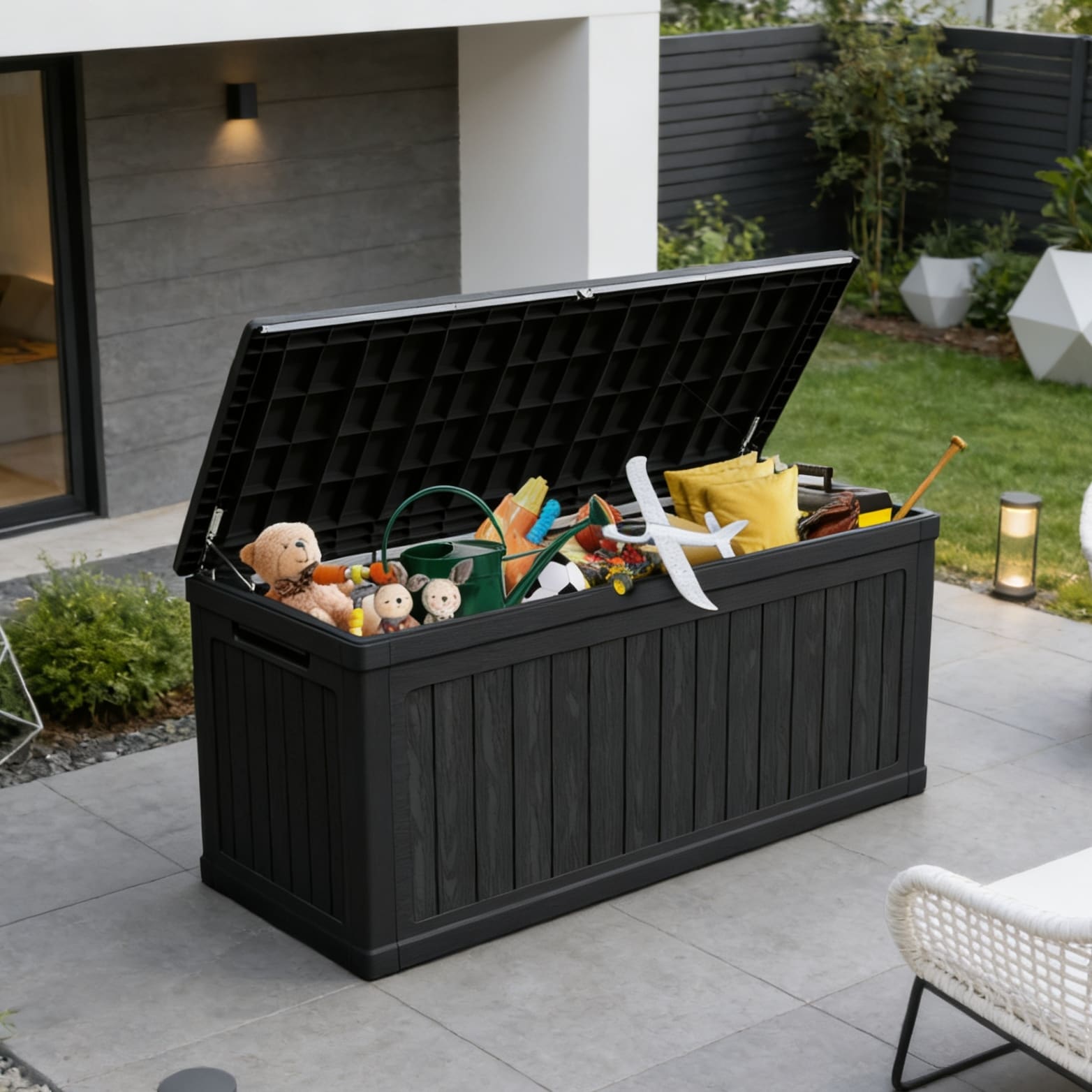 Outdoor Black Lockable Large Resin Plastic Waterproof Deck Storage Box