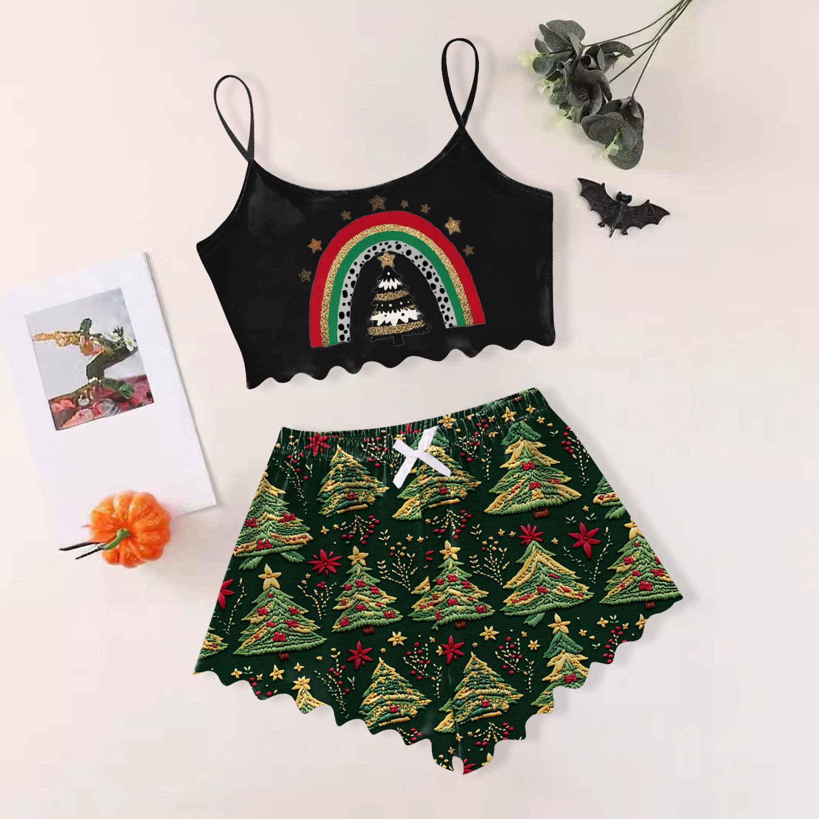 Women's Sexy Christmas Pajama Set, Sleeveless Shorts Sleepwear, Slim Fit Lingerie For Holiday, Daily Home Wear dark Purple m