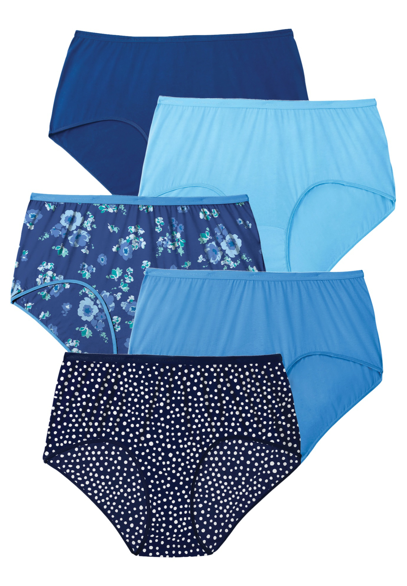 Plus Size Women's Cotton Brief 5-Pack by Comfort Choice in Evening Blue Dot Pack (Size 13) Underwear