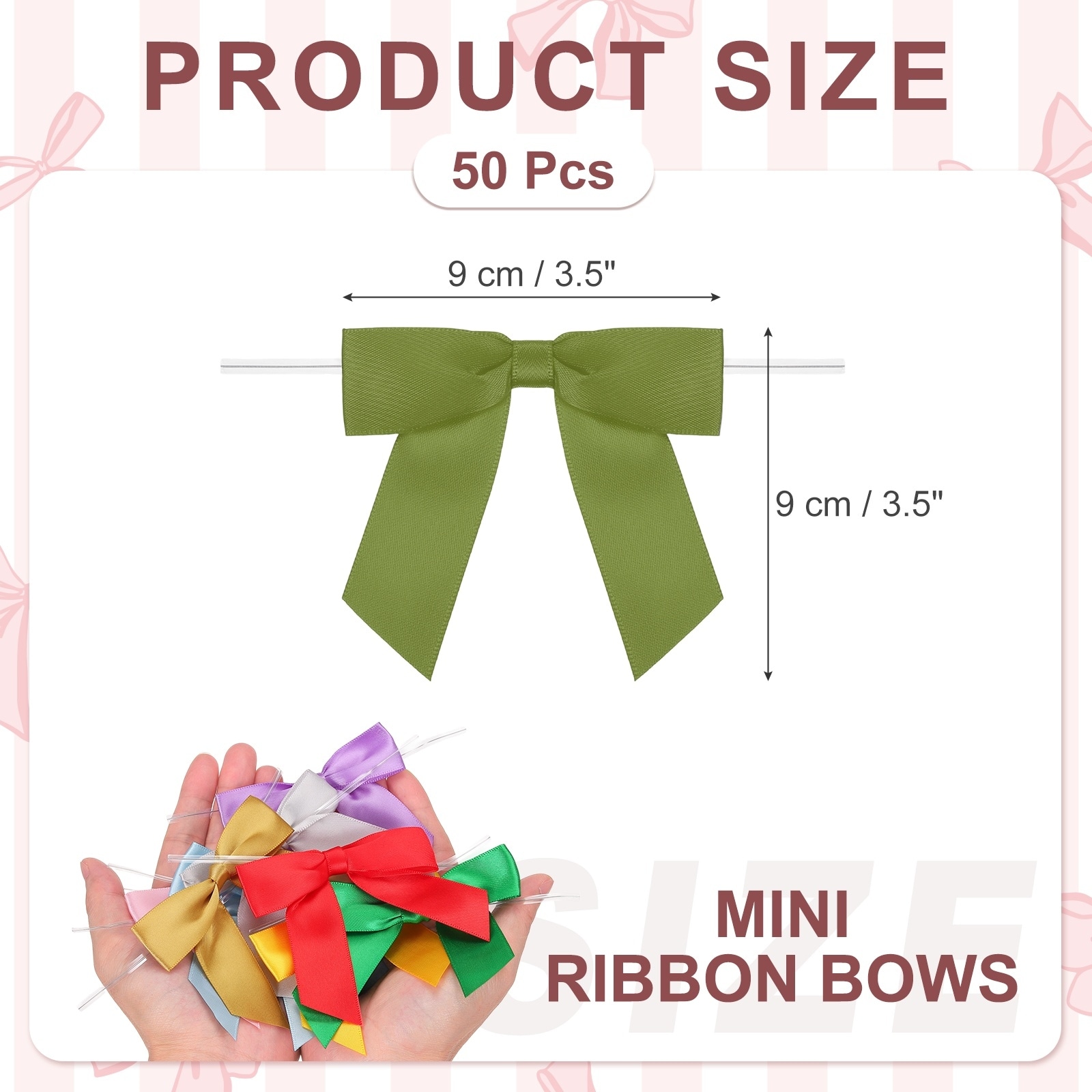 Twist Tie Bow Pre-Tie Gift Bows Mini Fabric Satin Ribbon for Treat Bags Crafts DIY Flower Sewing Wedding Birthday Party - 3.5"