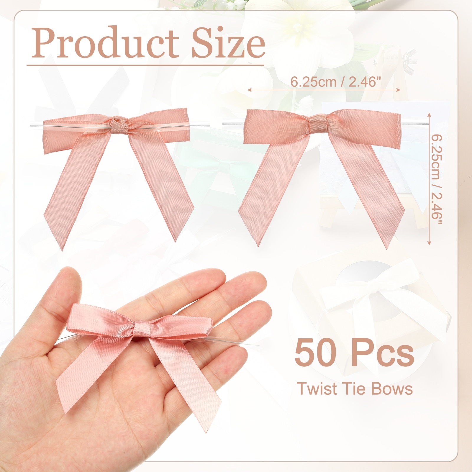 Twist Tie Bows, Premade Satin Ribbon Bow for Crafts Candy Treat Bags Cake Gift Wrapping Wedding Birthday Party Decorations