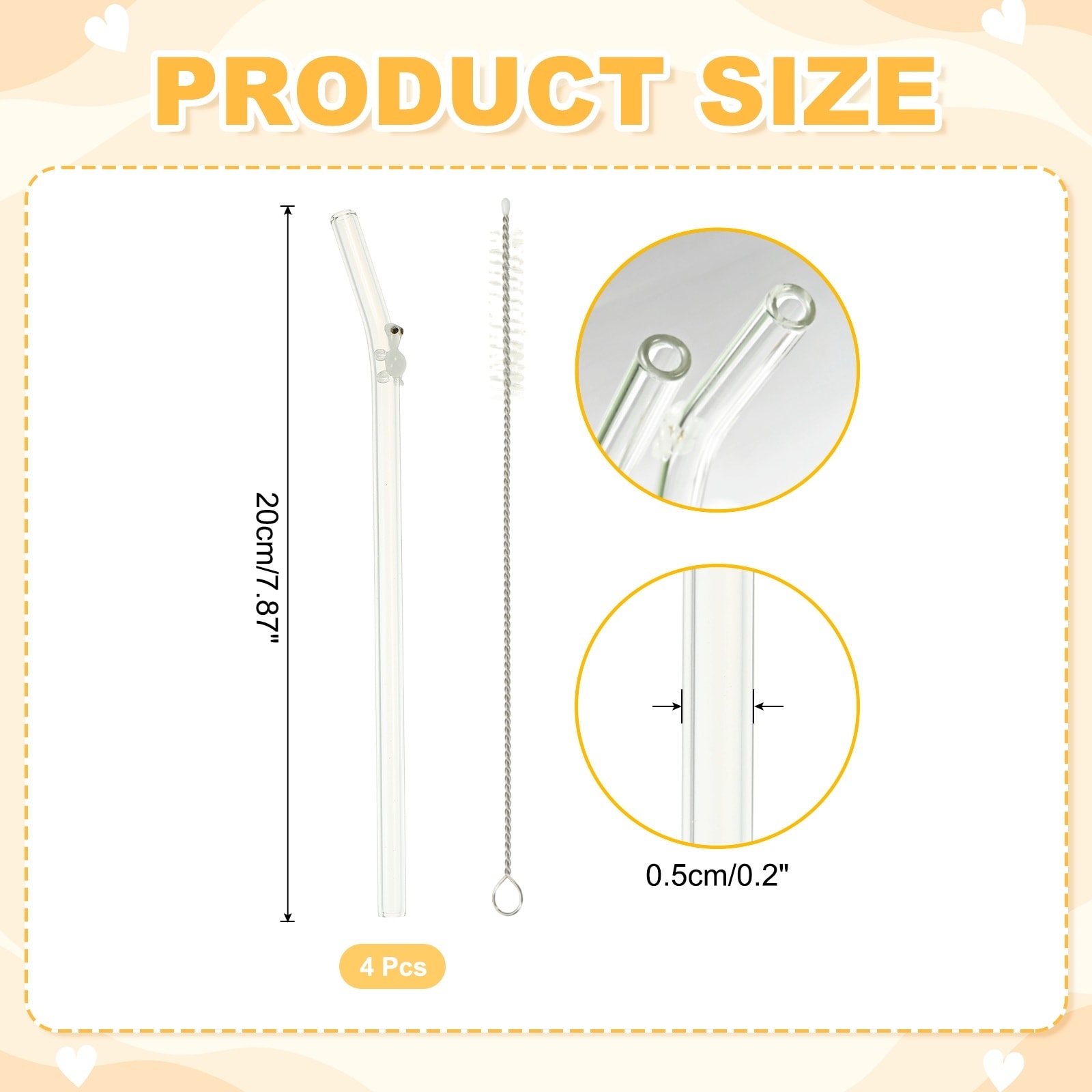 6 Pcs Reusable Glass Straws 7.87" Turtle, Pink/Yellow/Purple/Orange/White/Gray