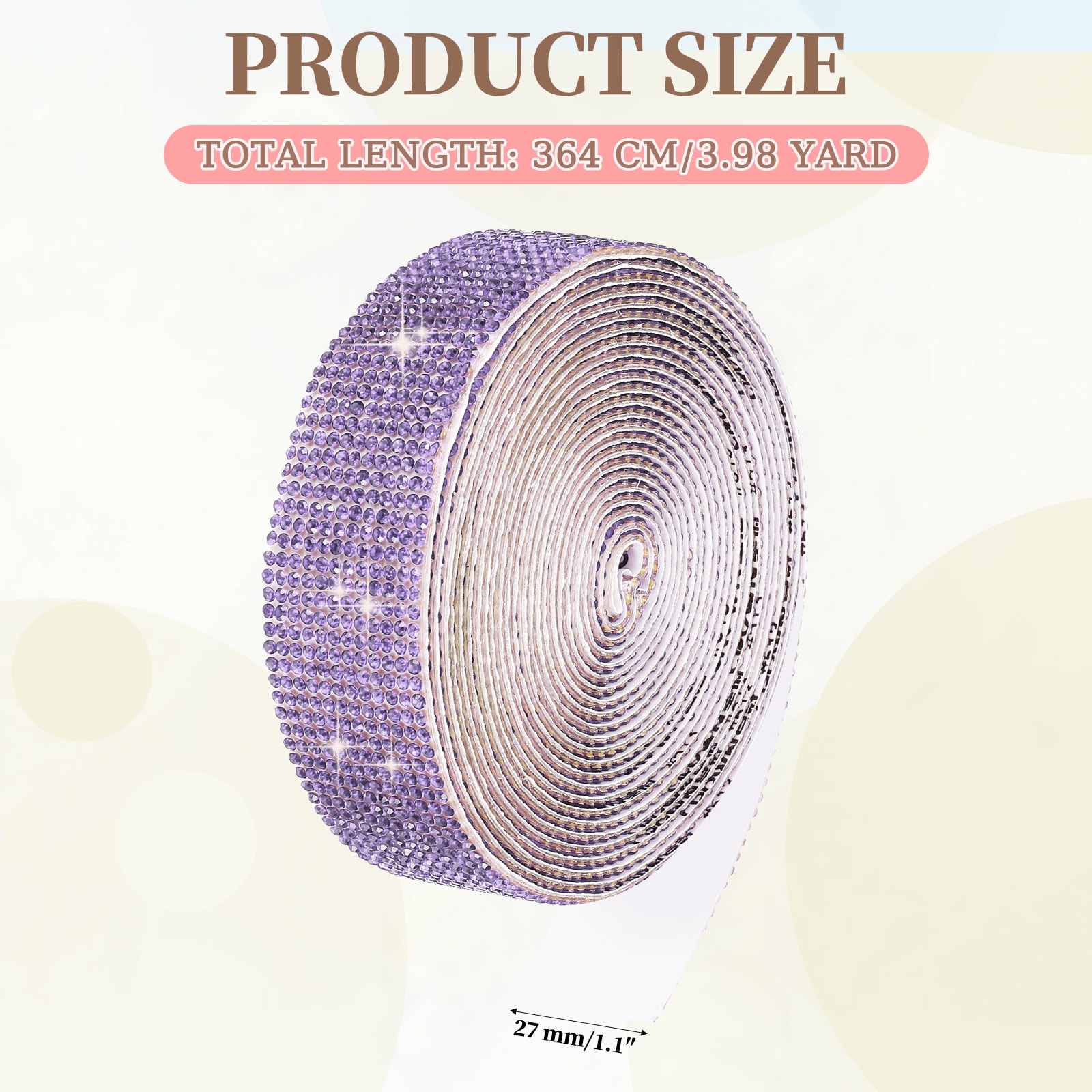 Self Adhesive Rhinestone Ribbon, Bling Diamond Crystal Strips Stickers for DIY Arts Party Car Phone Decoration - 1.1 Inch