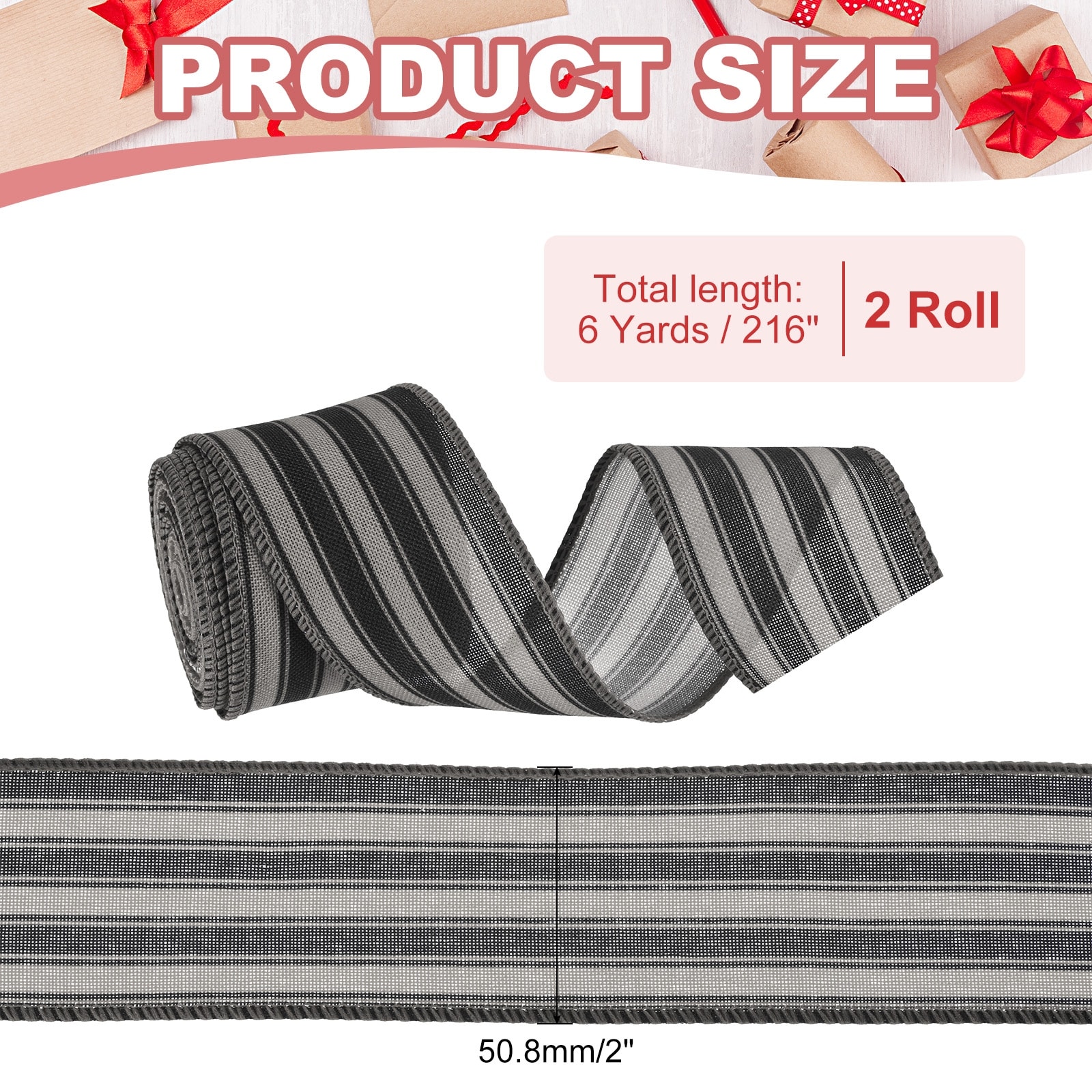 Striped Wired Linen Gift Wrapping Ribbon for Craft Birthday Wedding Festival Wreath - 12 Yards x 2"