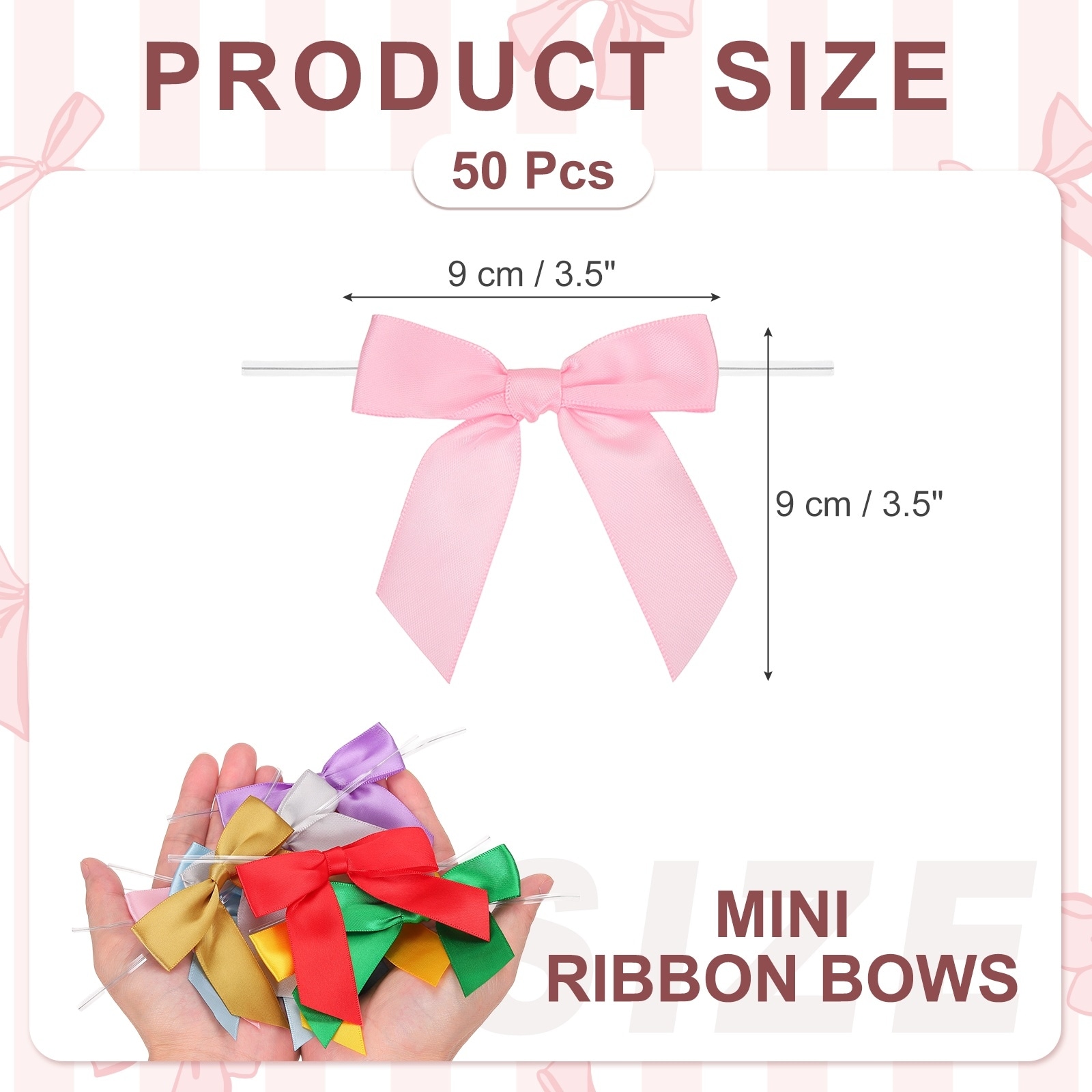 Twist Tie Bow Pre-Tie Gift Bows Mini Fabric Satin Ribbon for Treat Bags Crafts DIY Flower Sewing Wedding Birthday Party - 3.5"