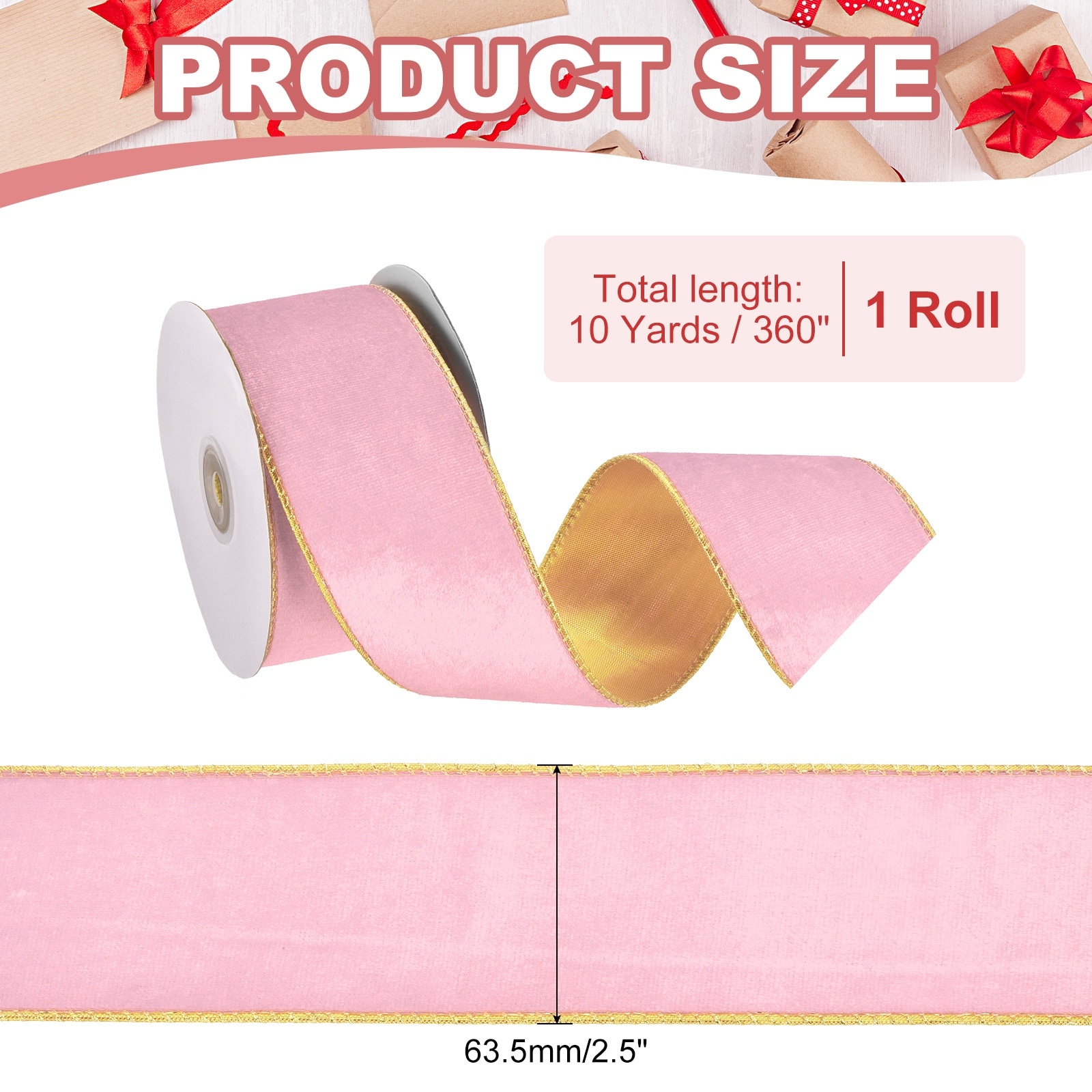 Christmas Ribbon, Velvet Ribbons Gift Wrapping Ribbon for Craft Birthday Wedding Festival Holiday - 10 Yards x 2.5"