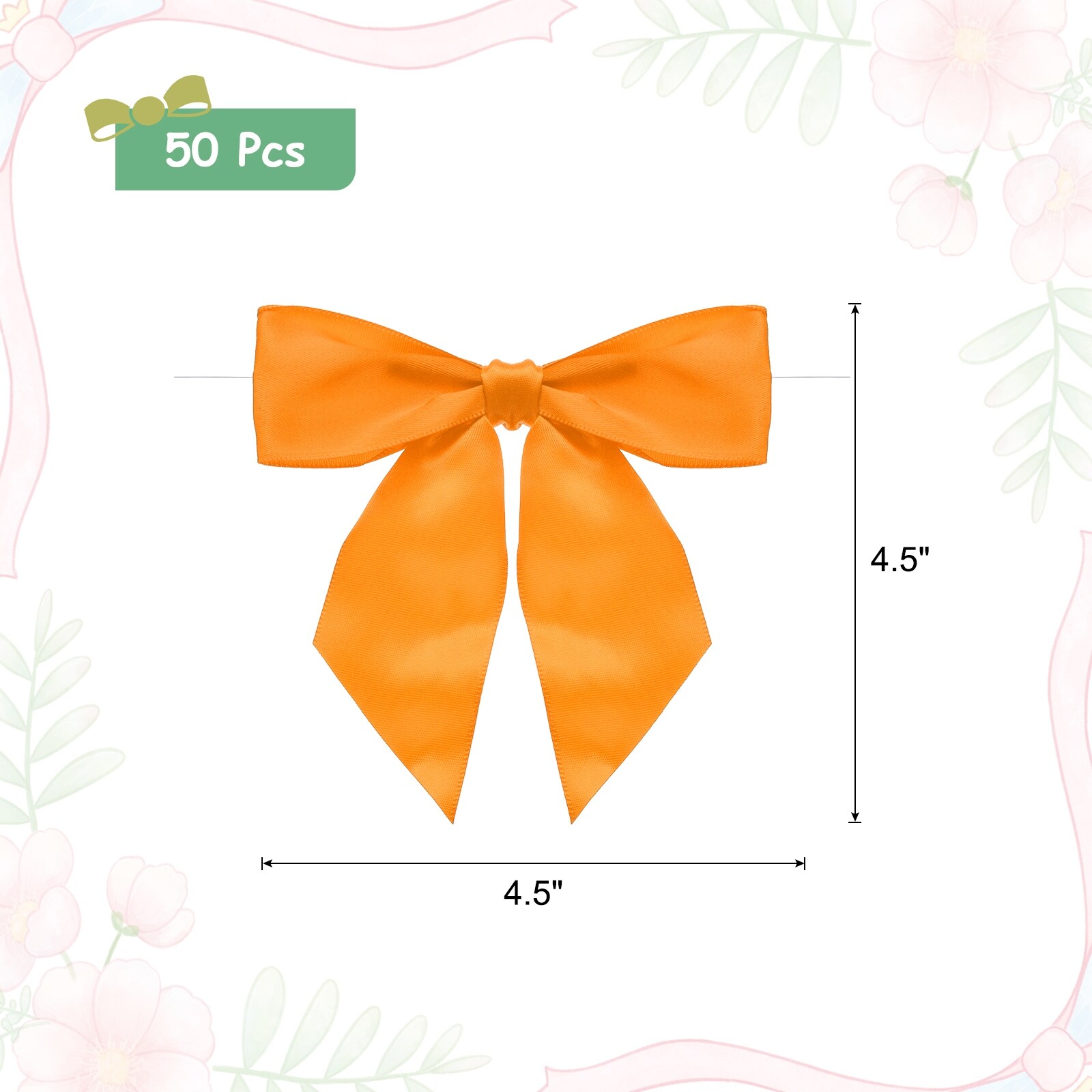 Pre-Tied Bows Satin Ribbon Bows Twist Ties Gift Bows for Craft DIY Candy Bags Christmas Wedding Decor Party - 50 Pcs, 4.5"