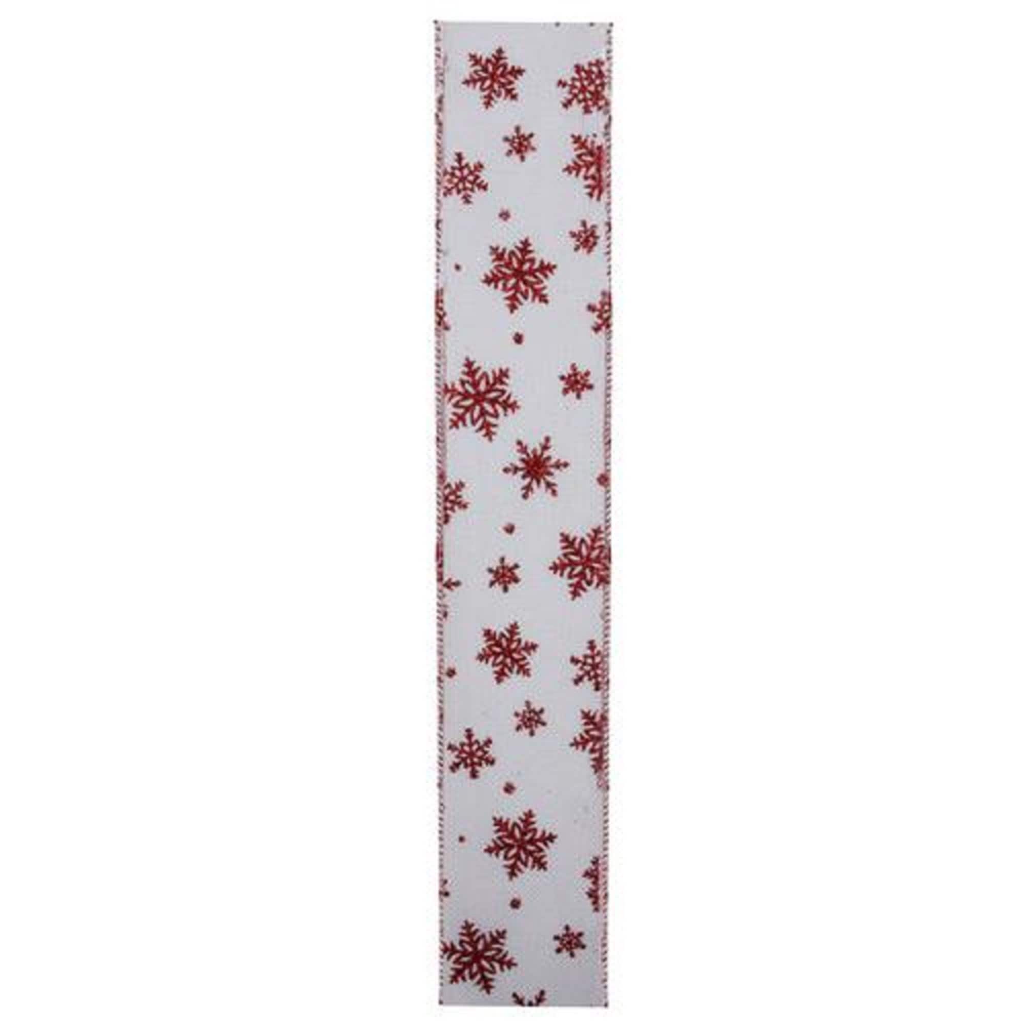 White and Red Snowflake Christmas Wired Craft Ribbon 2.5" x 10 Yards - 2.5" x 10 Yards