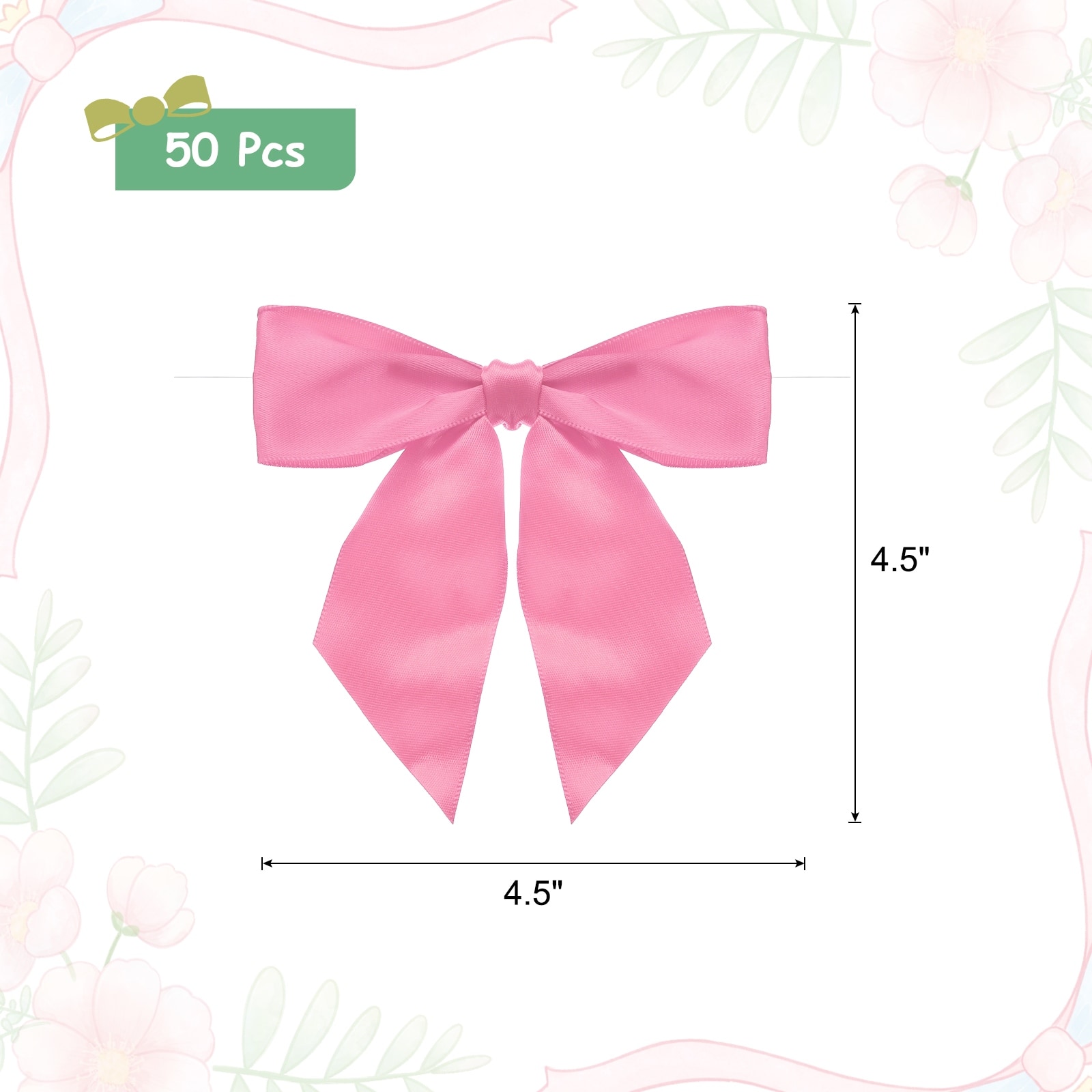 Pre-Tied Bows Satin Ribbon Bows Twist Ties Gift Bows for Craft DIY Candy Bags Christmas Wedding Decor Party - 50 Pcs, 4.5"