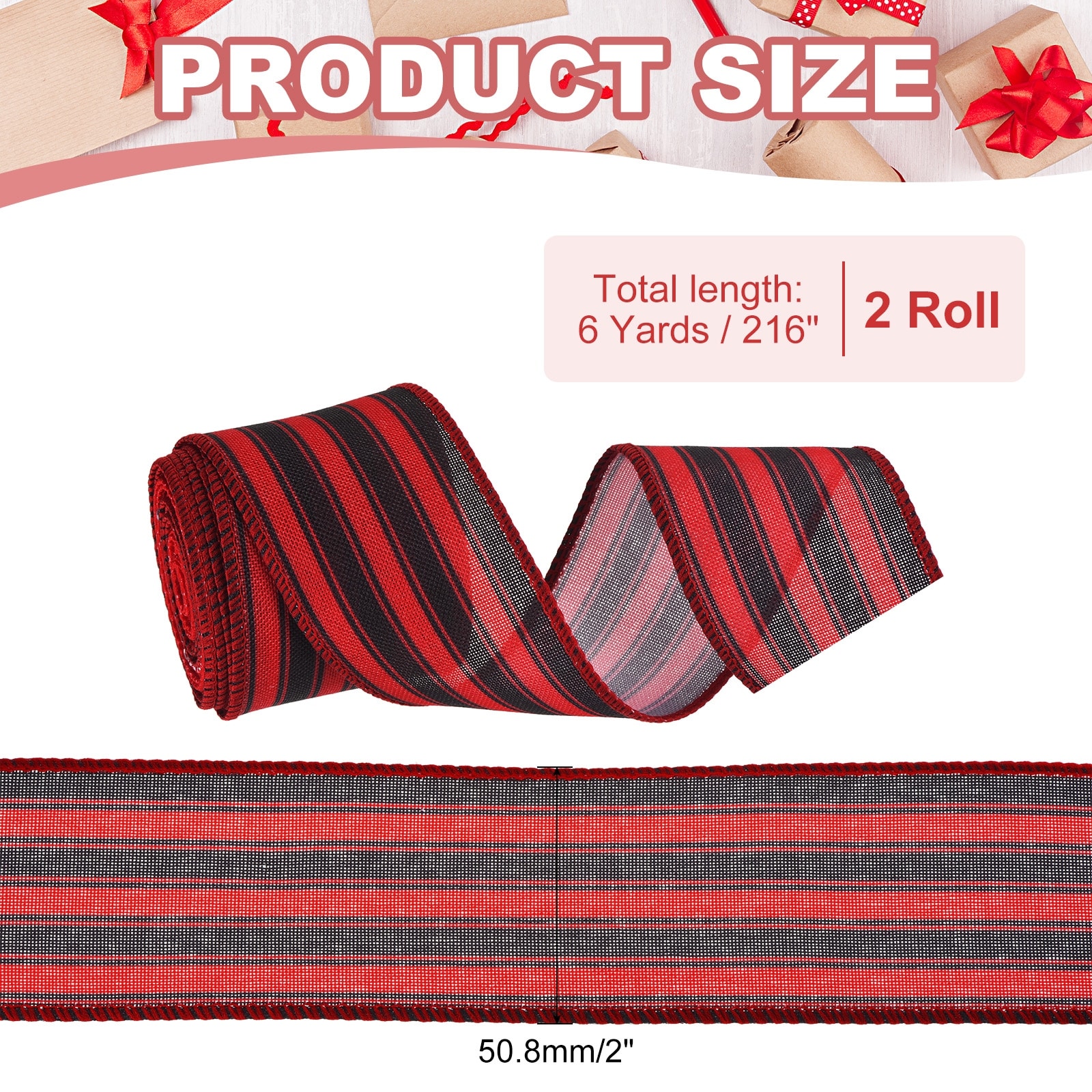 Striped Wired Linen Gift Wrapping Ribbon for Craft Birthday Wedding Festival Wreath - 12 Yards x 2"