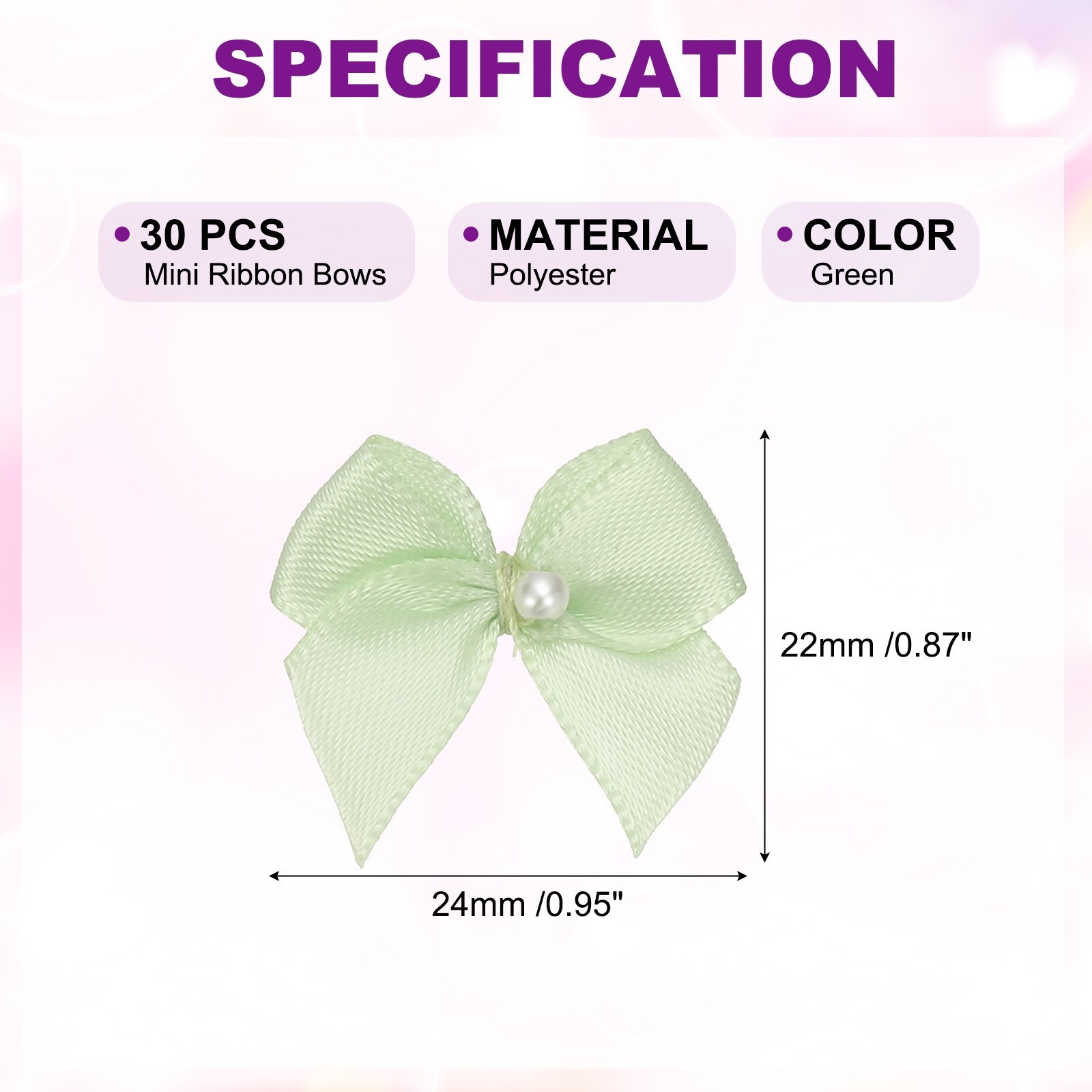 Mini Ribbon Bows, Flower Pearl Sewing Appliques Decoration for DIY Craft, Wedding, Christmas - 22cm x 24cm