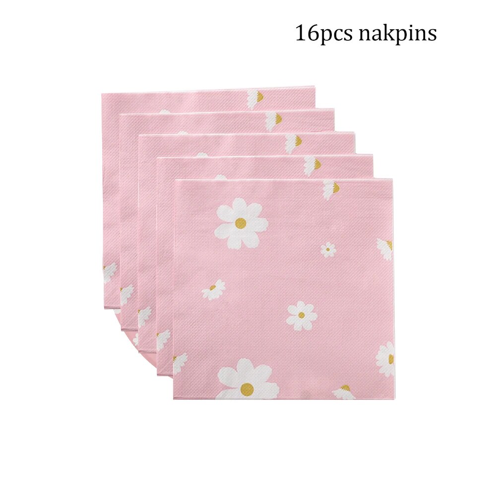 Daisy Theme Birthday Party Decor: Pink Disposable Tableware & Napkins 16pcs Napkins