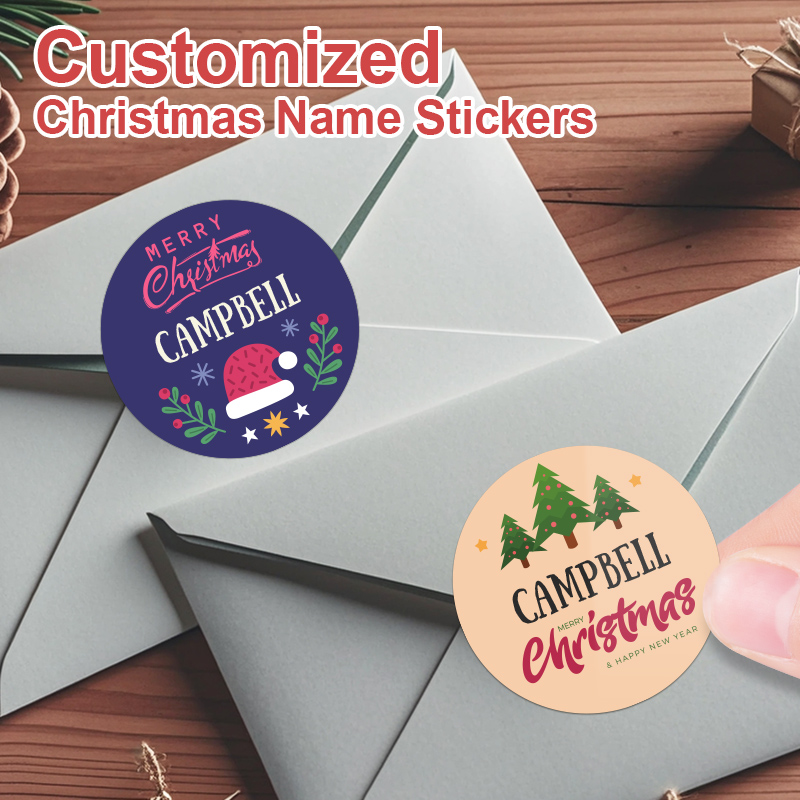 Circle Adhesive Christmas Labels, Custom Merry Christmas Stickers, Holiday Stickers For Christmas Greeting Cards 96pcs 4x4cm